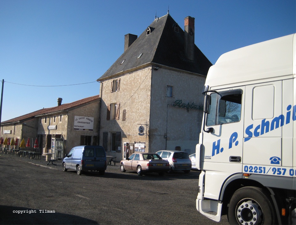 ... erster Kaffee bei einem Routier an der N10 in der Nähe von Angouleme.