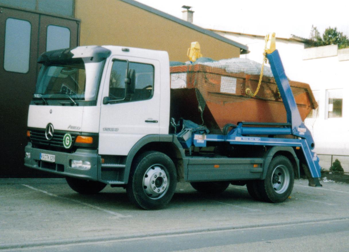 auweh die Ladungssicherung bei dem roten Atego der die zwei Verbau-Elemente