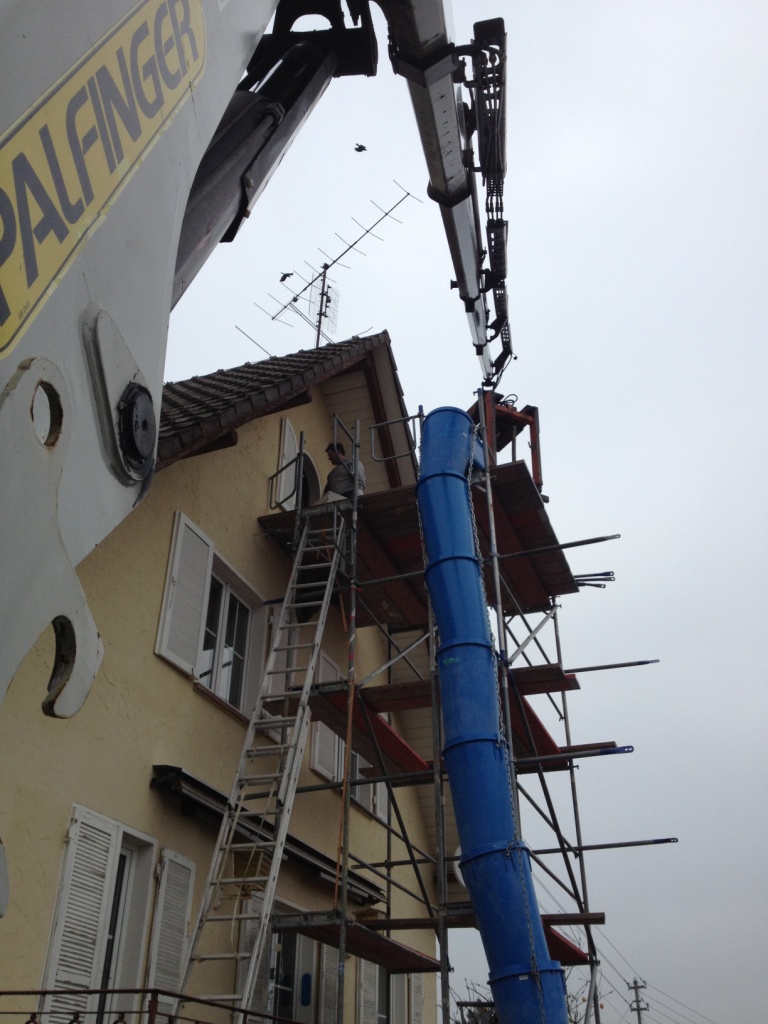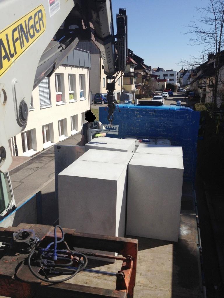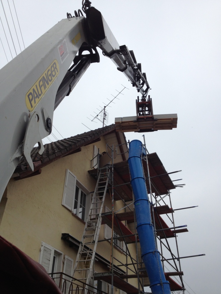 Deine Aktion mit den Briketts über die Garage ist aber auch schon was für Fortgeschrittene daumen ; die Stütze in der Garage und der Knickpunkt vom Kranausleger genau über dem First- lieferst du da öfter aus, oder? Von wo aus verschaffst du dir denn da die Übersicht?