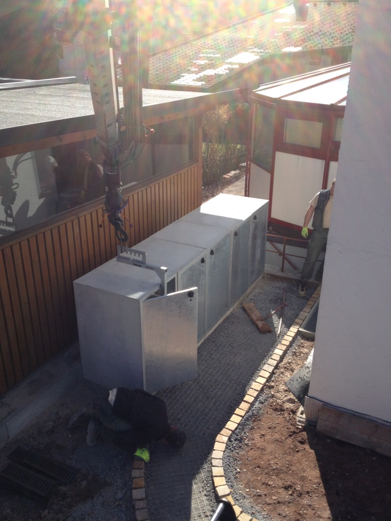 Weiter gehts mit Müllboxen setzten zwischen Haus und Garage.