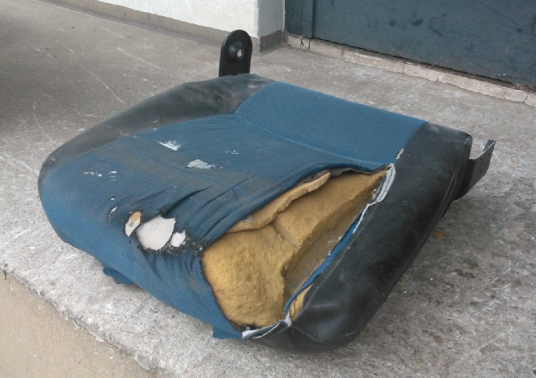 Zuerst hatte ich den Fahrersitz auseinander genommen und das Sitzkissen entsorgt und auch die