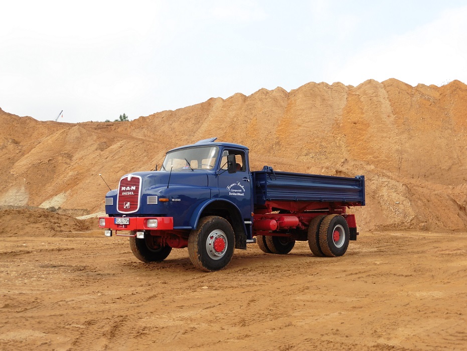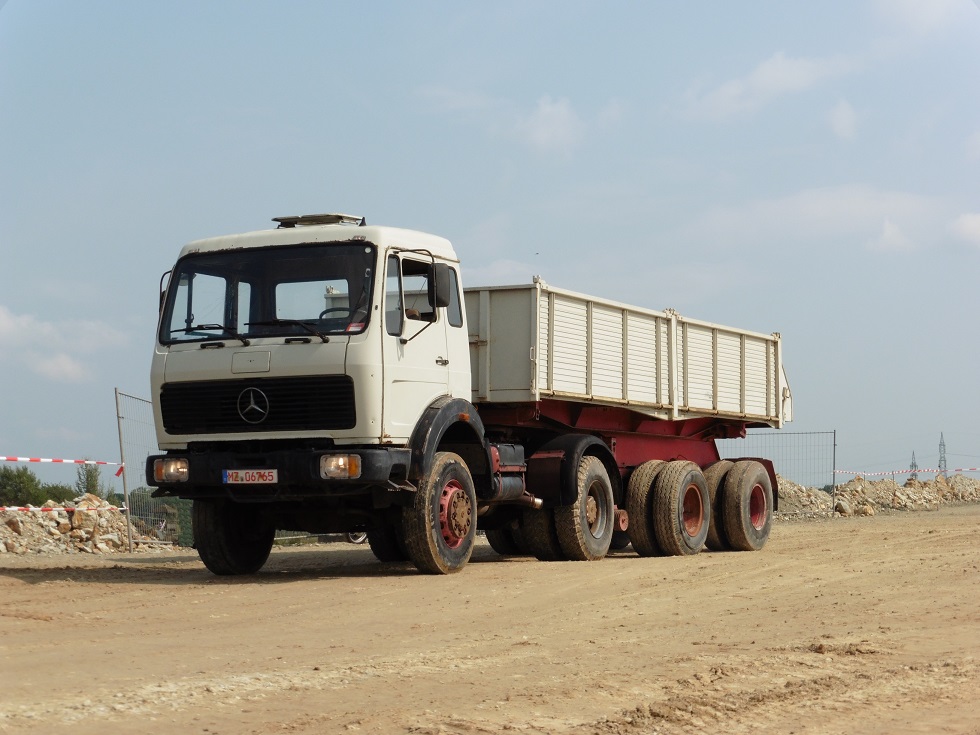 Was ist das denn für ein cooler patinierter Mercedes Kippsattel mit rotem "Meenzer Nummernschild"?