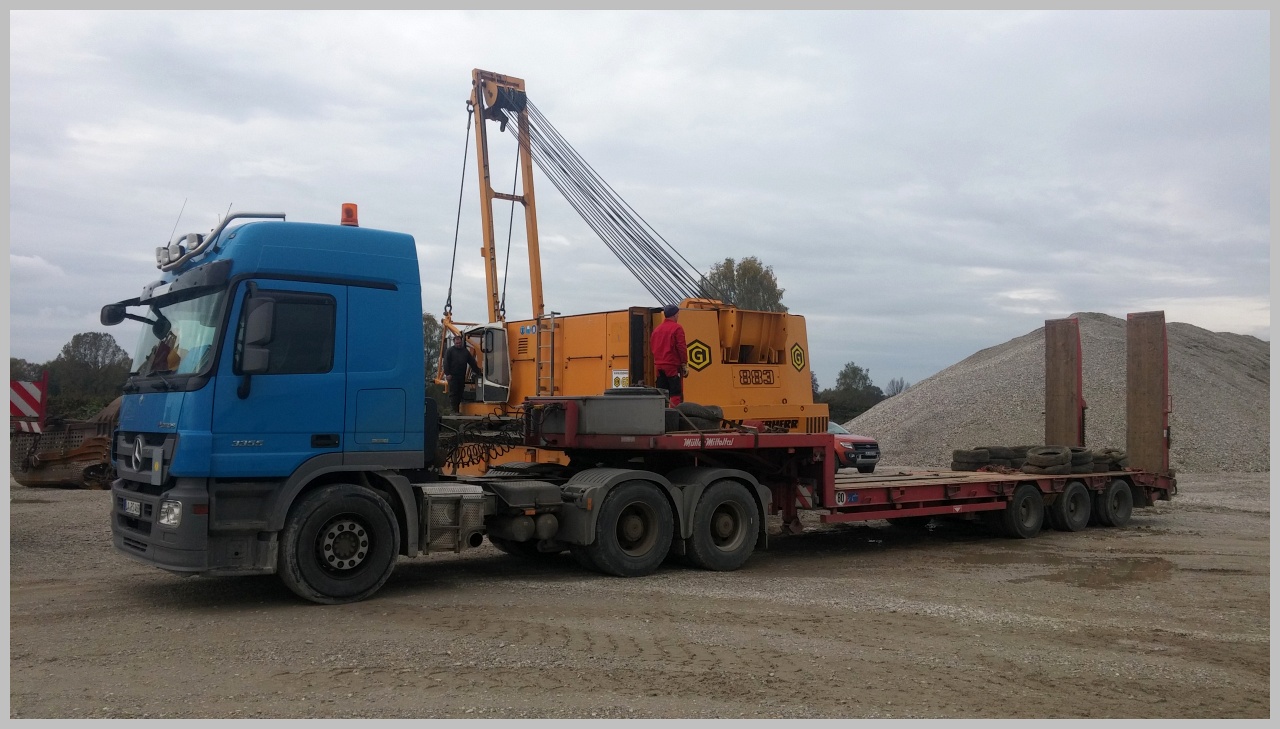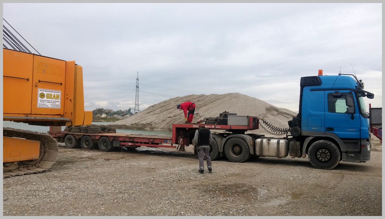 Also.... gestern Abend ist der Hs883 auf die Reise in ein anderes Kieswerk gegangen, nachdem er jetzt ein wenig mehr als ein ganzes Ereignisreiches Jahr am selben Standort verbracht hat.... Am neuen Standort hat der Bagger für ein paar Wochen Arbeit und kommt anschließend wieder zurück nach Berglern. Am neuen Standort wird man ihn von der A92 aus zwischen den Ausfahren Moosburg Nord- und Süd sehen können... Der ein oder andere wirds jetzt schon wissen, wo er zu finden ist.