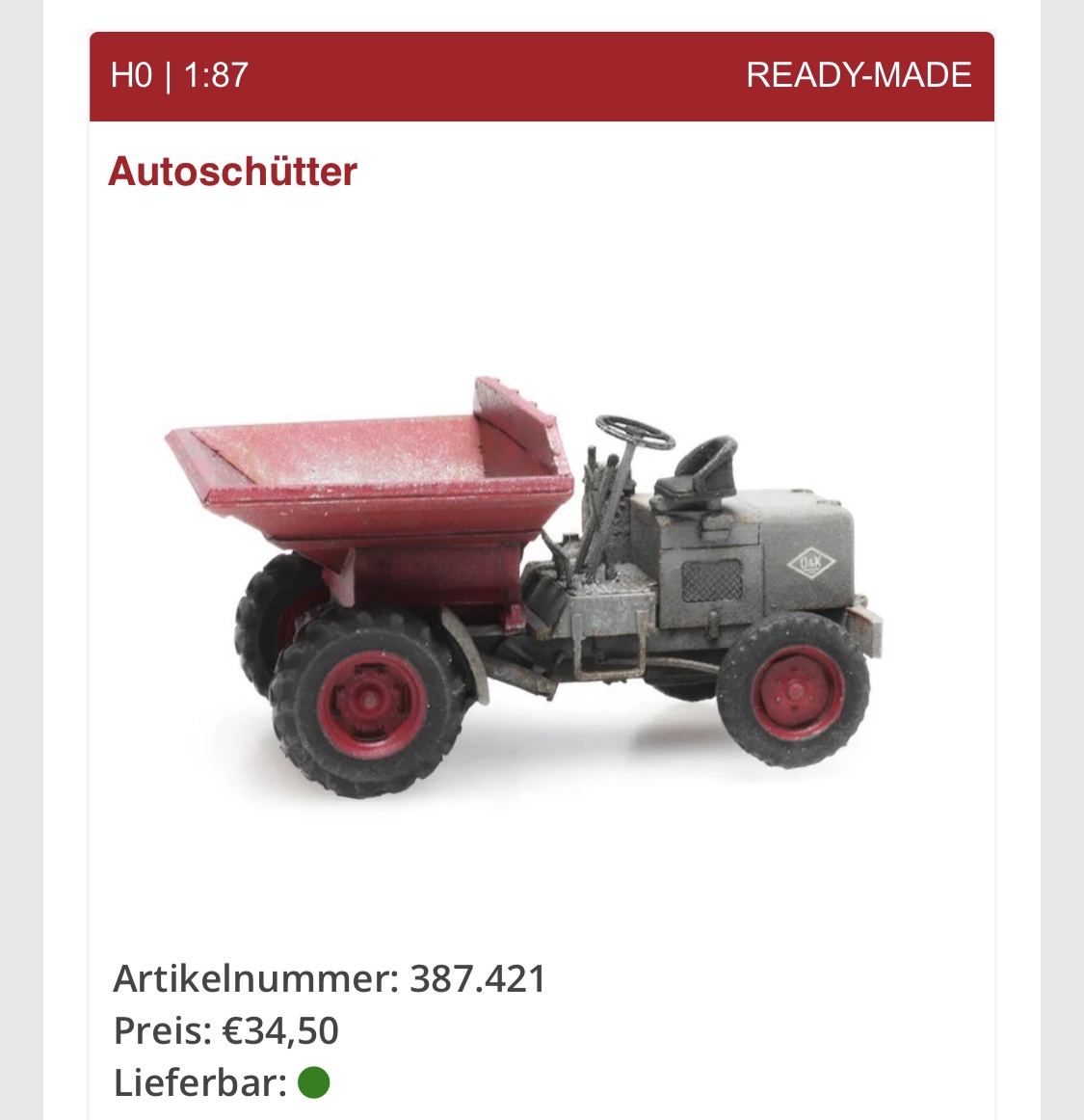 Mein nächstes Projekt soll der Autoschütter von O&K sein, den die Firma Artitec in 1:87 herausgebracht hat. Aber welches Fahrzeug bildet Artitec nach???
