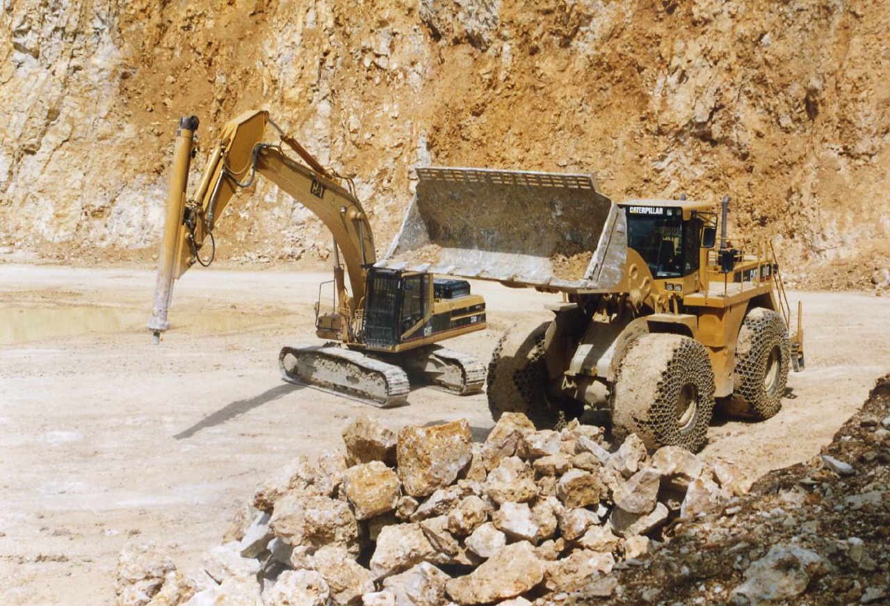 Hier ein paar Fotos aus einem Kalksteinbruch, wo mit einem Cat 990-II und einer Cat 775E abgebaut wird.