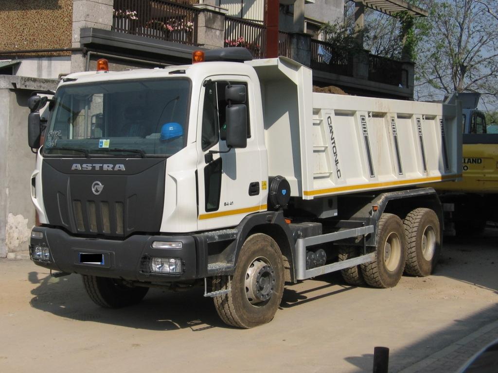 Astra truck are built in Italy in Caorsana. Originally the factory was based in Sardegna (Anonima Sarda TRAsporti) and was founded to restore and repair ex-army trucks that were used a lot in after-war Italy. In '50 and '60 the production grew up and Astra trucks were mainly used as beton mixers. During the years Iveco's parteciaption in the society grew up, now the engines are Iveco but with different powers and also the structure of the cab and other things come from Iveco. Astra also made rigid and articulated dumpers.