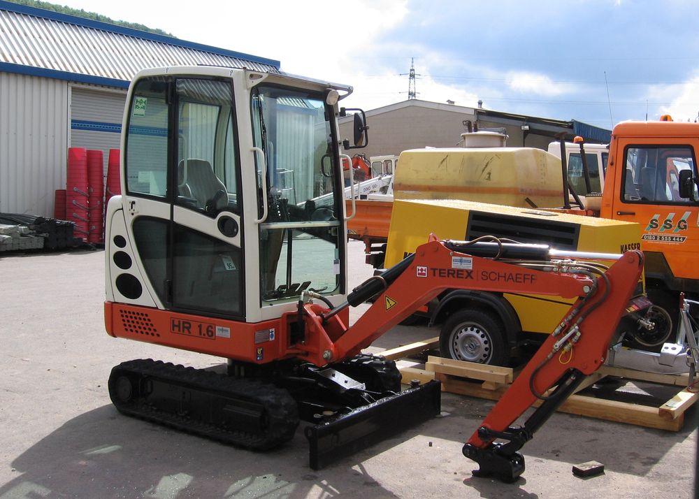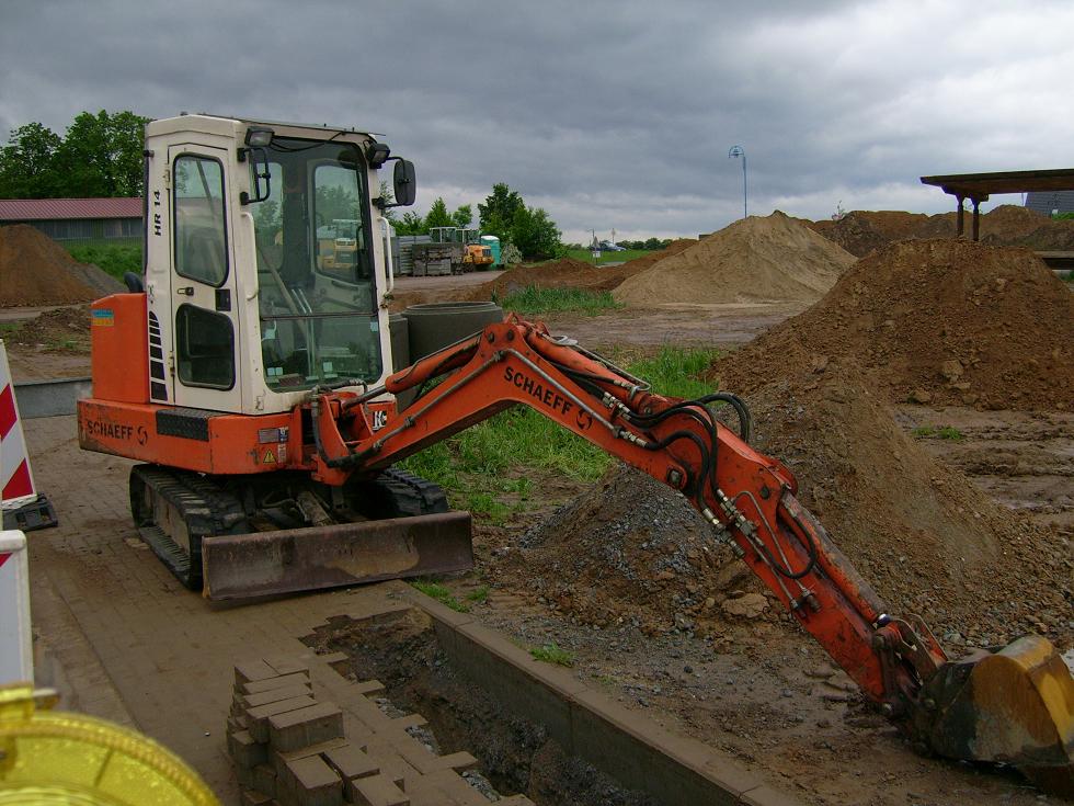 Ein kleiner Schaeff. Er wurde beim Neubau einer Siedlung mit Zweifamilienhäusern eingesetzt. Der Typ ist leider unbekannt. Er schaut schon etwas betagt aus.