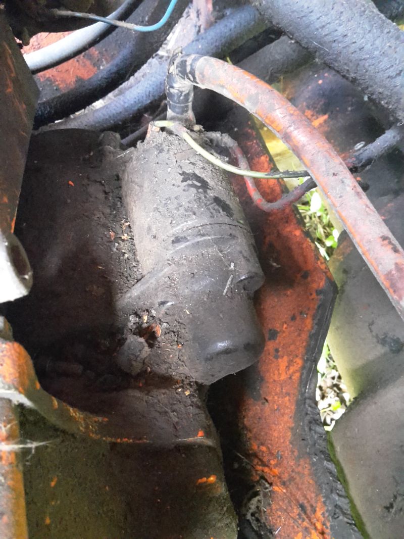 Ein Kollege (Landmaschinenmechaniker), der sich ganz gut mit Elektrik auskennt, musste ran. Wir schlossen den Anlasser kurz, was aufgrund der besch... Position des Anlassers zwischen Motor und Fahrerstand ziemlich schwierig war, aber er klackte dennoch nur. Somit ist höchstwahrscheinlich der Anlasser defekt, evtl. defekte Wicklung und genau an dem Punkt stehen geblieben oder so.