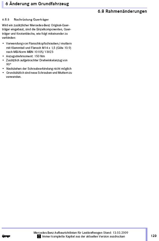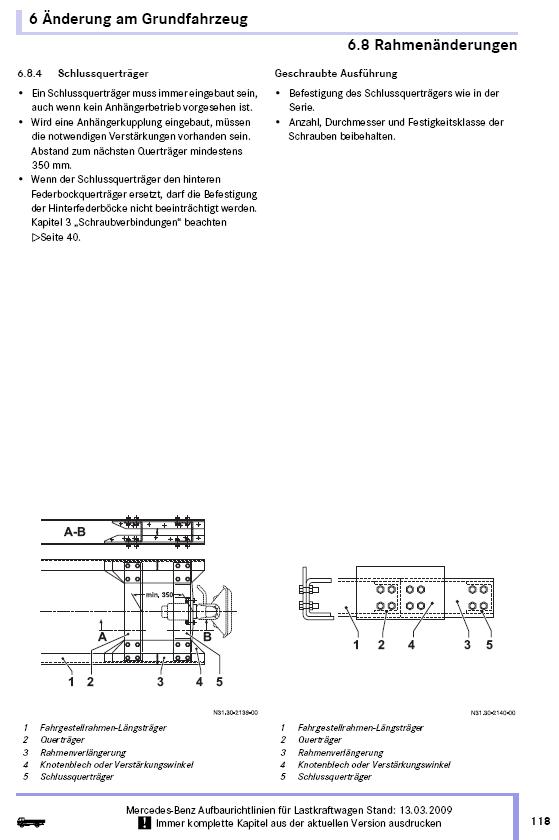 Ok, das könnte eine Erklärung sein. Aber irgendwie bin ich noch nicht richtig überzeugt, da das Hubgerüst ja formschlüssig mit dem Chassis verbunden ist und daher denselben Zweck erfüllt. Außerdem hat eine Heckabschlußtraverse (meistens) einen U-förmigen Querschnitt, ist also verdrehweich. Ich hätte gehofft, jemand hätte einen Auszug aus den Aufbaurichtlinien, damit man weiß, was und vor allem,warum es der Hersteller fordert.