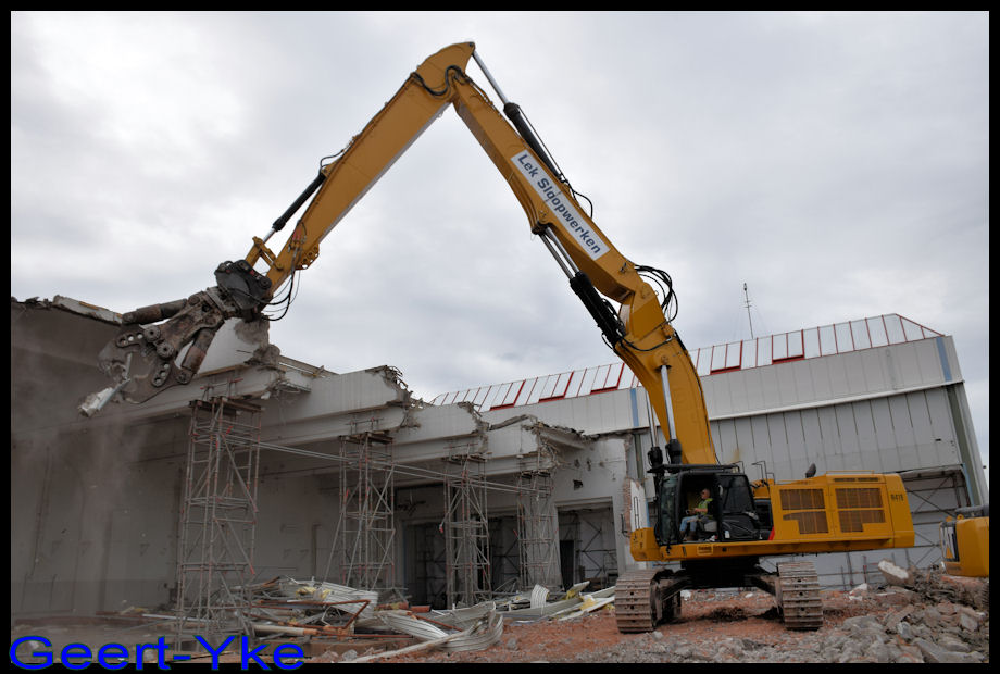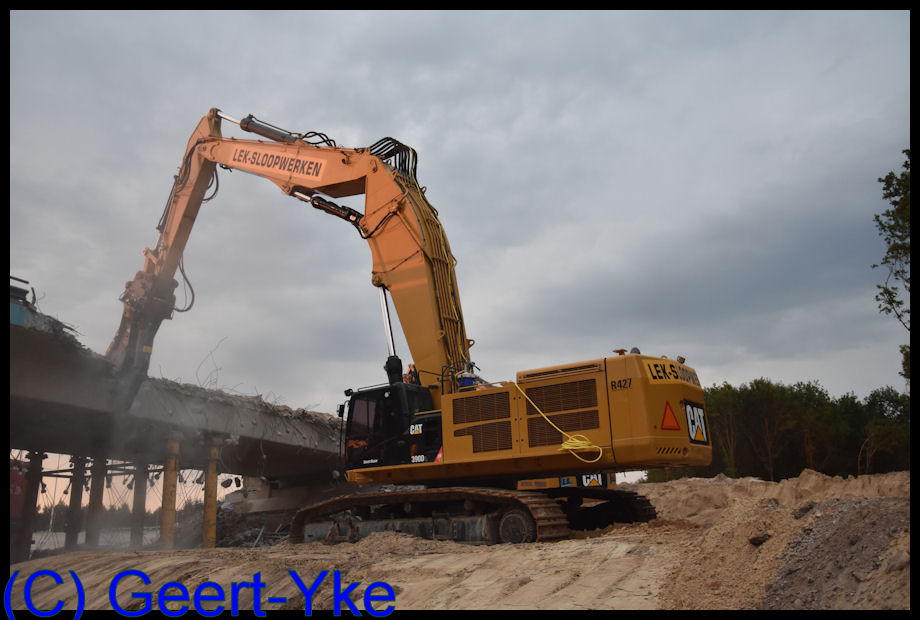 Cat 390D Triple mit der weltweit erste Mantovanibenne/Dehaco CR 140R Abbruchzang von Lek Sloopwerken. Der CR 140R hat einer offnung von 2 m. und Einsatzgewicht von 14 ton.