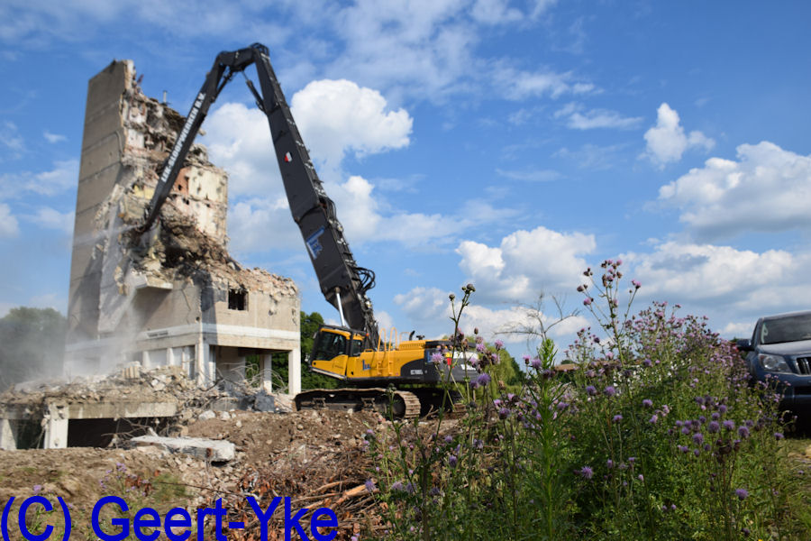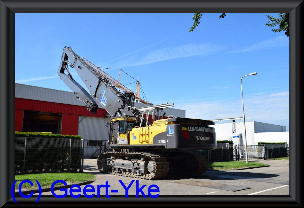 Der neue Volvo EC 700C HRD Longfrontbagger von Lek Sloopwerken. Der hat einer 3-teilige Abbruchausleger und so mit Zwisschenstuck einer arbeitshohe von 35m und 3,5 ton werkzeuggewicht.