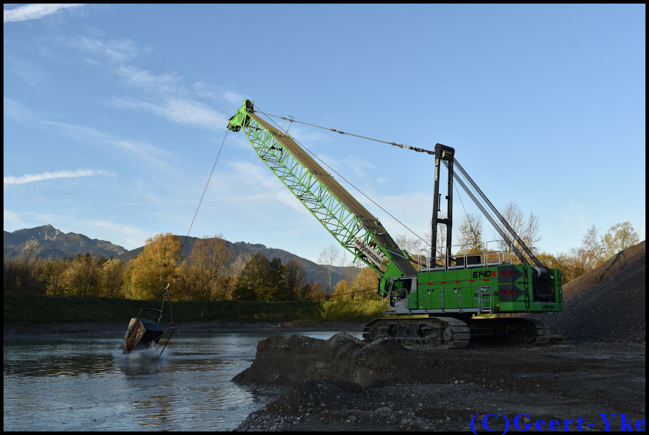 Ein neue Sennebogen 6140E HD duty cycle crane im einsatz fur BIG Bauunternehmen GmbH. Der wirdt genutzt bei winnung von Kies und hat ein 7m3. Esco Schleppschaufel.