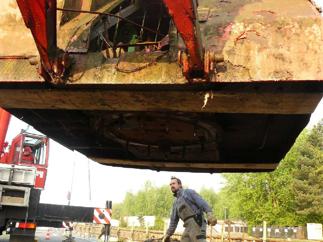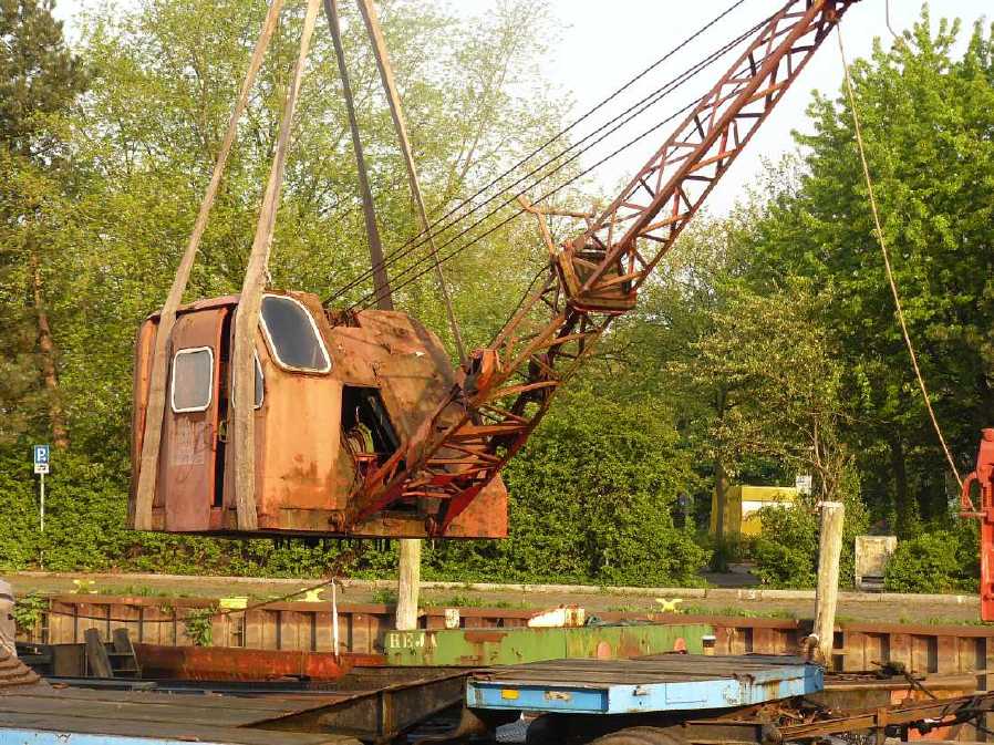 Die Hälfte fehlt leider, da der Oberwagen mit dem Drehkranz direkt auf die Schute geschweißt wurde.