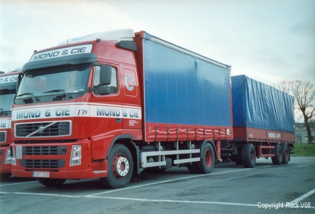 einen Volvo F10 aus den 80ern gepostet habe, man aber doppeltes Posten von Bildern vermeiden sollte, kommt nun hier sozusagen ein Enkel des F10, nämlich ein FH12 Globetrotter von Mond & Cie. Das Bild habe ich im November 2002 in Welkenraedt auf dem Firmenparkplatz gemacht.