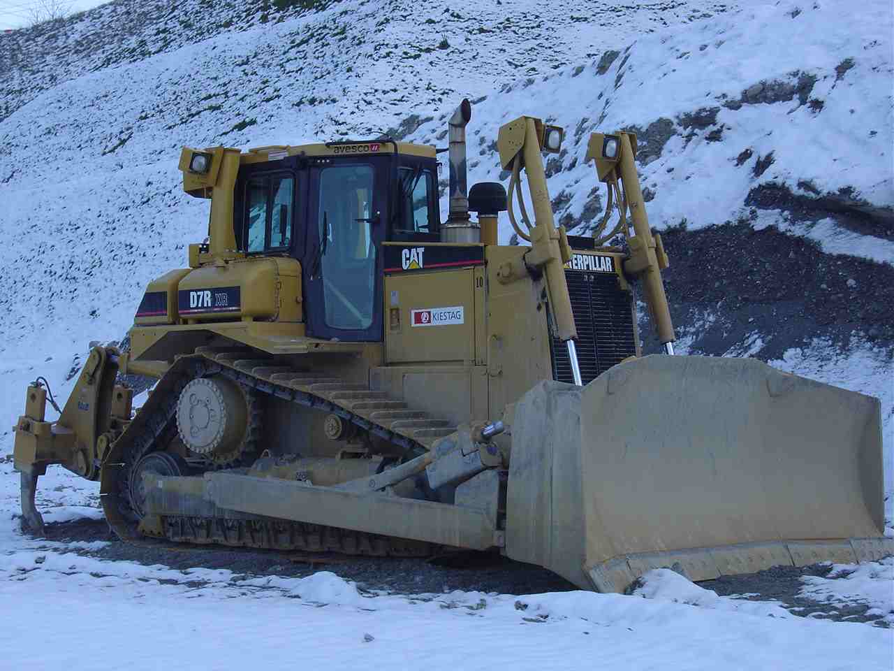 Eine in der Schweiz relativ seltene D7 R mit Diferentiallenkung. Dieser Bulldozer steht in einer Kiesgrube im Einsatz.