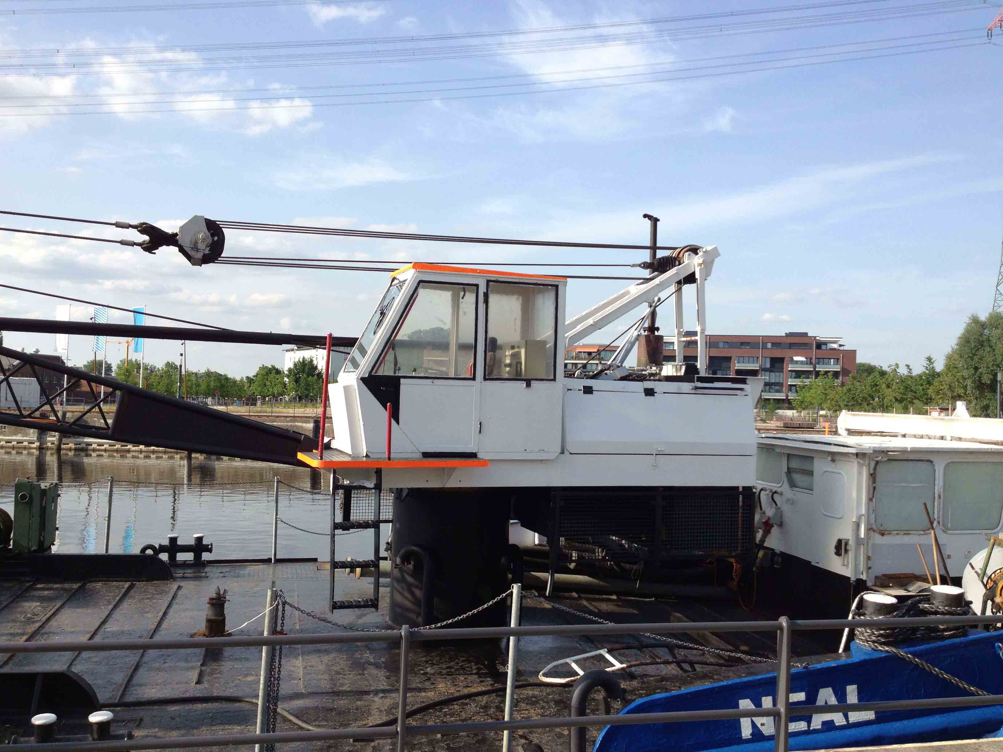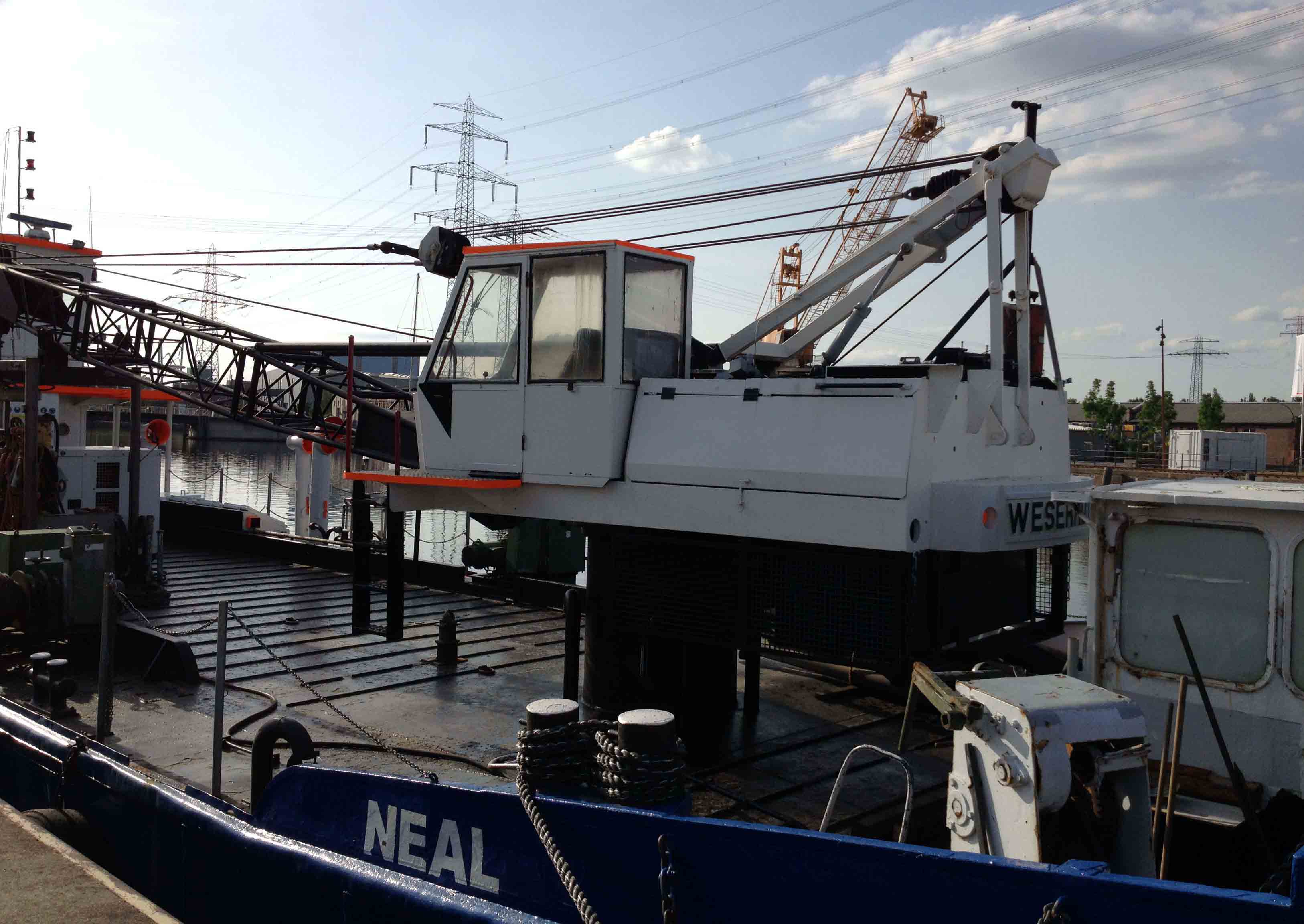 Der Kran wurde wahrscheinlich 1981 von Sennebogen gebaut und war von Beginn an für den Schiffkran-Einsatz vorgesehen.