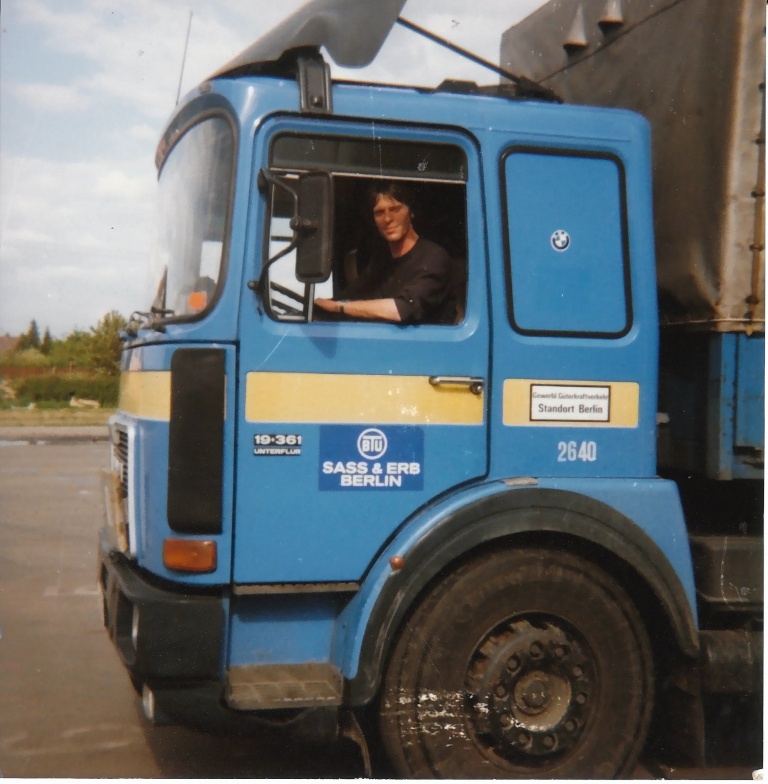 Nach ein paar kurze Gastspiele bei "Kunze" und Millionen Schulze, hat er 69 bei MAB (Möbel aus Berlin) gefahren. Als die das erste Mal pleite waren, fing er bei Nordgetränke an. (Wasserwerke)
