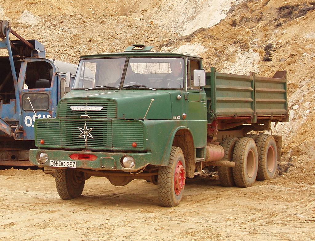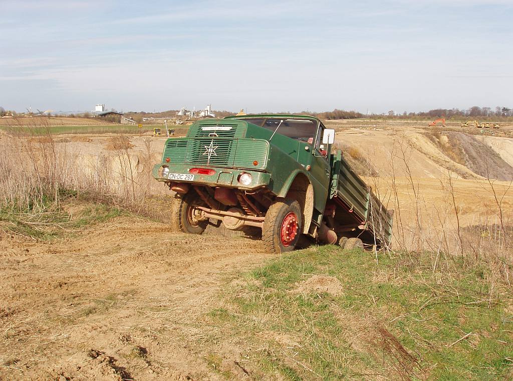 „Donnerwetter, das hatte ich jetzt nicht gedacht“, mit diesen Worten empfing der Henschelmann den jetzt um mindestens einen halben Meter gewachsenen Mercedesmann. Der wiederum kam laut aus seinem blauen Kipper und rief nur: „Hab ich dir doch gesagt, ein Mercedes geht da auch durch, wo ein Henschel durch geht. Und ich hab noch einen Löffel mehr drauf“. Plötzlich war die Seite gekippt, Mercedes war der Lastwagen und so entfernte man sich nach einiger Zeit des Fachsimpelns wieder vom Duellort.