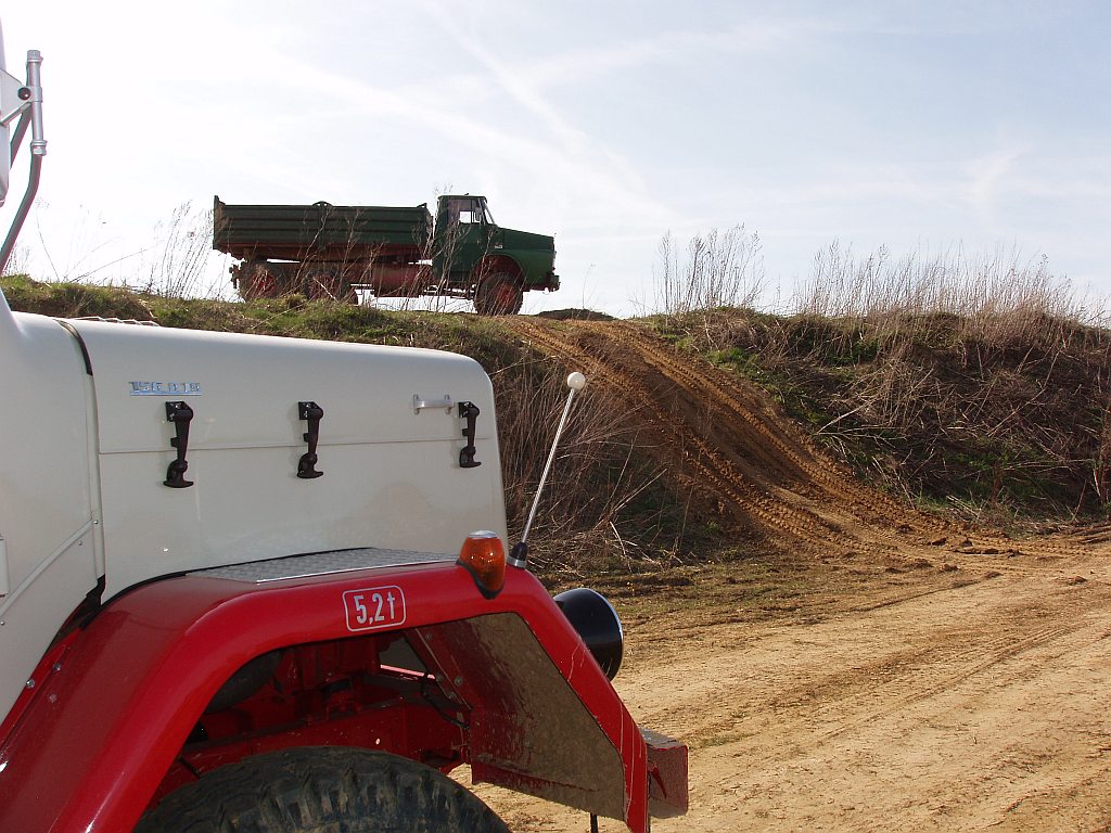 Daß der Dreizack auf 11er Reifen fuhr, während der Henschel sich mit 10er-Trennscheiben begnügen mußte, war auch nicht sooo wichtig... schließlich war der Schlamm ja nicht mehr knie- sondern nur noch knöcheltief lach