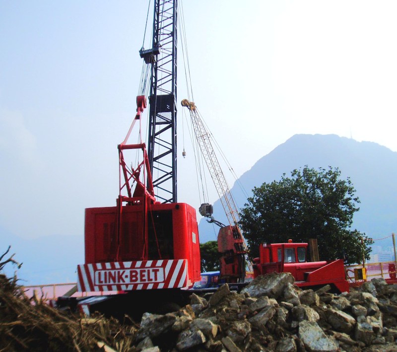 Während hier in Europa die M3 und M4's von O&K und andere Hersteller den Einzug hielten, wollte man im Land der unbegrenzten Möglichkeiten noch viel mehr, denn der Pneubagger sollte als Kran auch richtige Lasten tragen können wie ein Kran. So entwickelte man bei P&H und wie hier gezeigt bei Link Belt den Universal-Kranbagger.