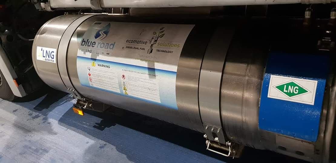 Das Fahrzeug ist ein Dual Fuel Fahrzeug, sprich ein Teil des Diesels wird durch Gas ersetzt. Je nach Last und Topographie wird mehr oder weniger Gas hinzugefügt. Man kann hier nicht nur LNG nutzen, sondern auch das bekanntere LPG (Autogas) oder CNG (Erdgas, Biogas). Das System ist nicht neu, viele Flotten auch hier in Deutschland fahren die LKW im Diesel-Gas Mixbetrieb, oft aber eher mit Autogas.