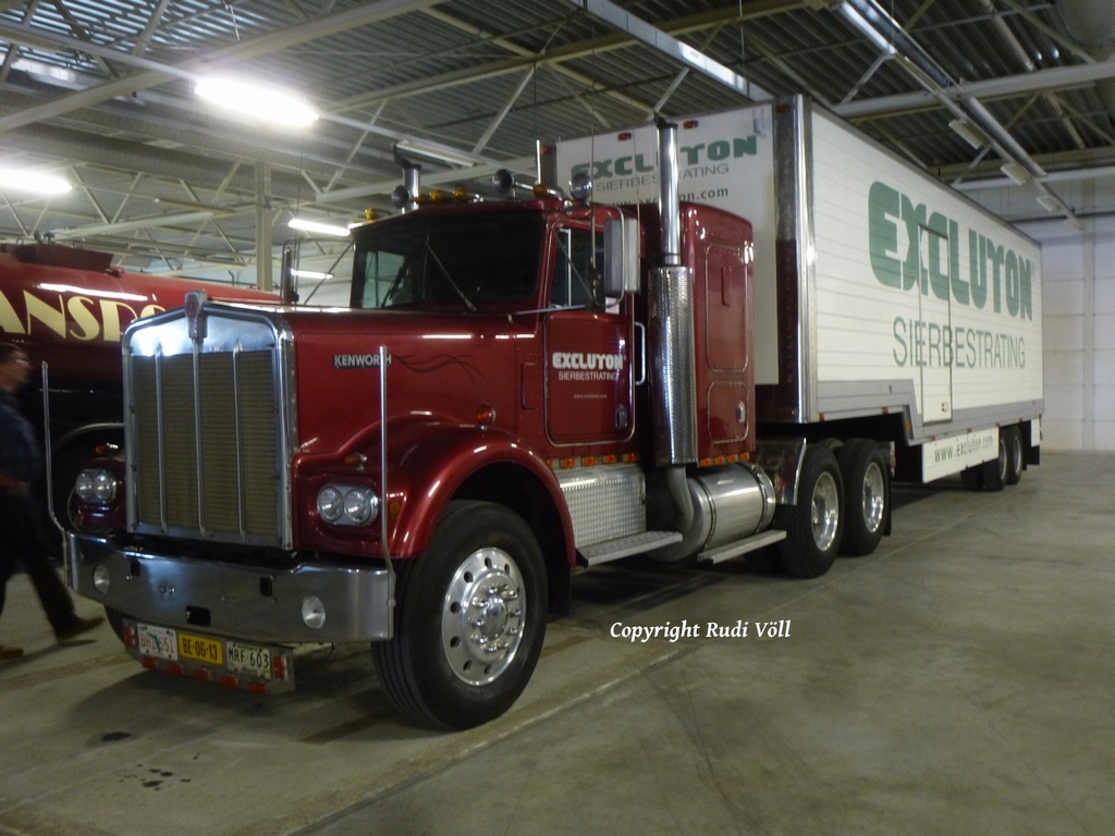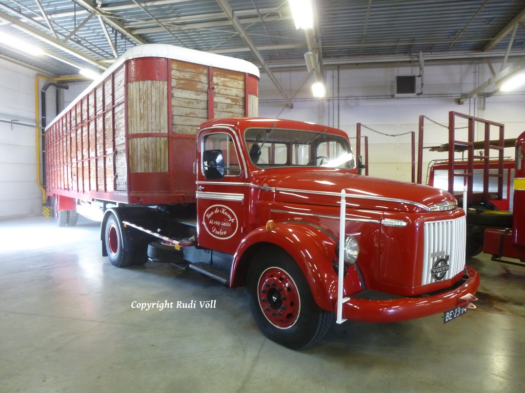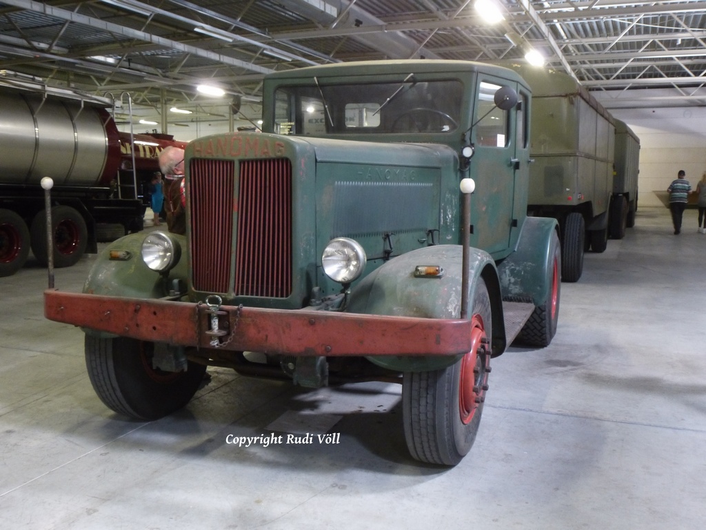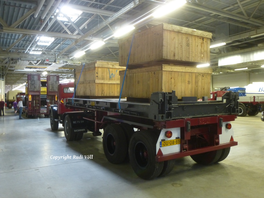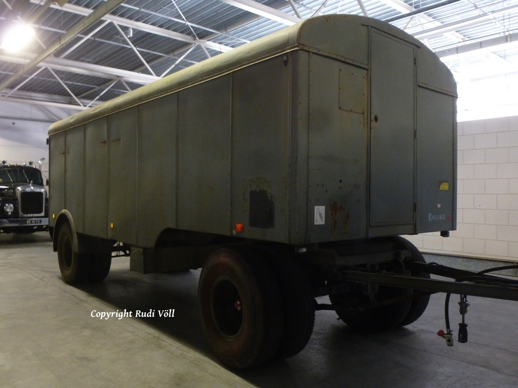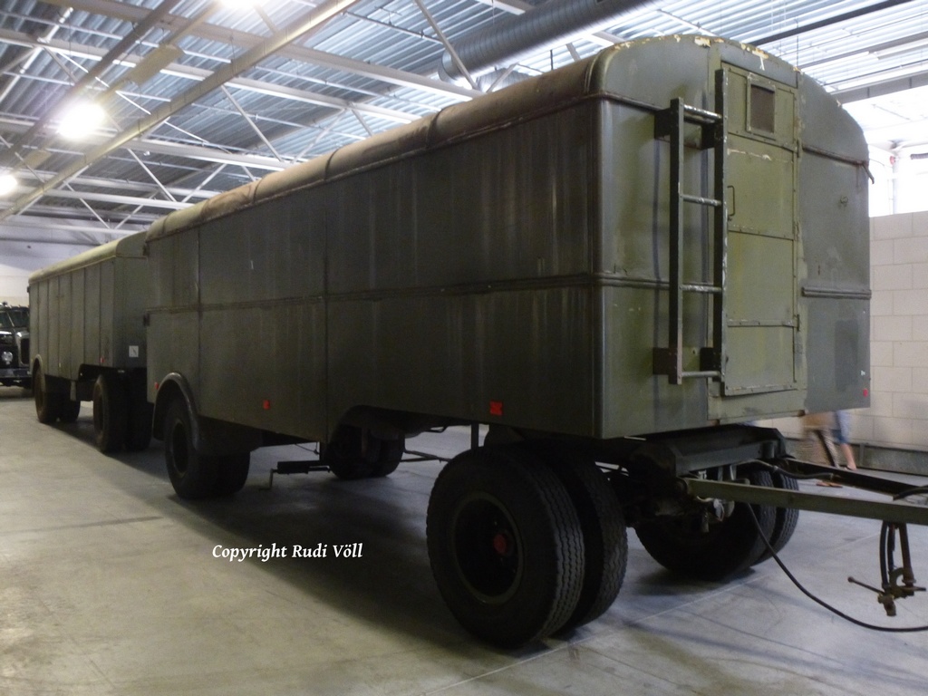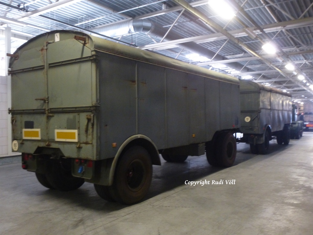 ich mach dann mal weiter mit den Fahrzeugen, die sich in der großen Halle befanden. Neben dem MACK stand ein klassischer Kenworth W900 Koffersattelzug, dann ging es weiter mit einem tollen Gespann in Form einer Hanomag ST100 Zugmaschine und zwei Kofferanhängern. Ich vermute mal, daß die vom Belgischen Militär her stammen.