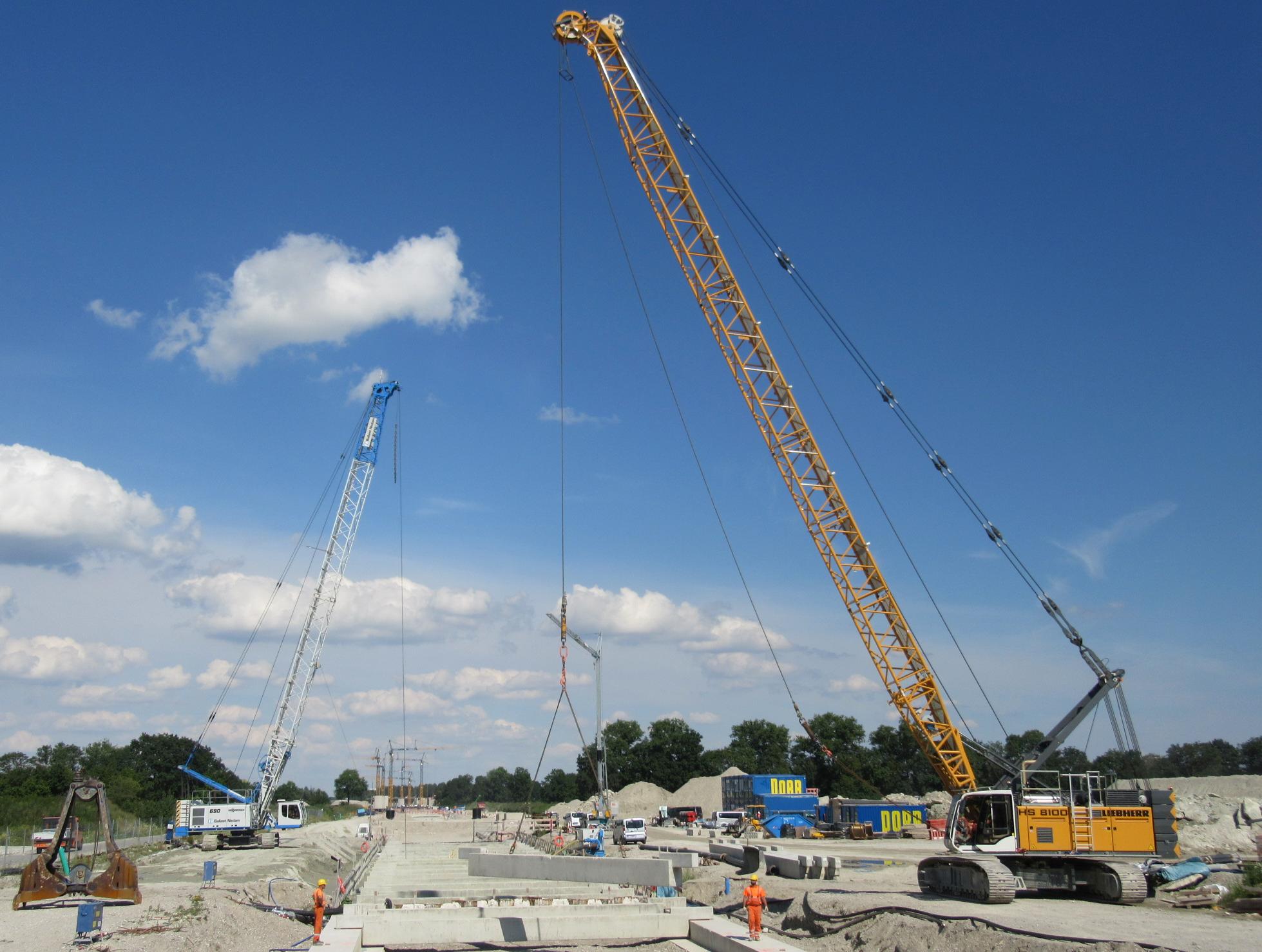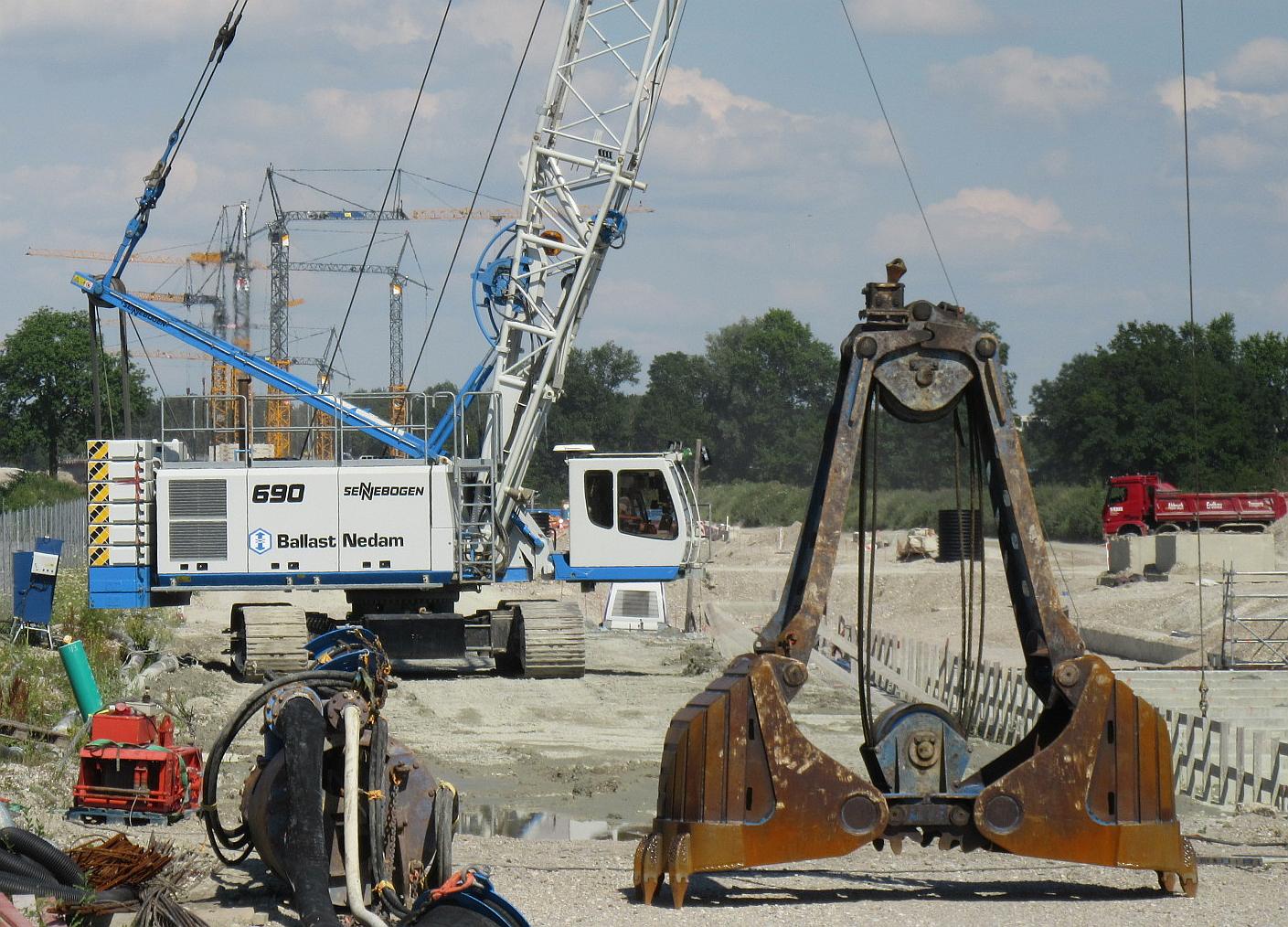 immer noch bei der Naßbaggerei, ganz schönes Kran-Gewusel im Hintergrund