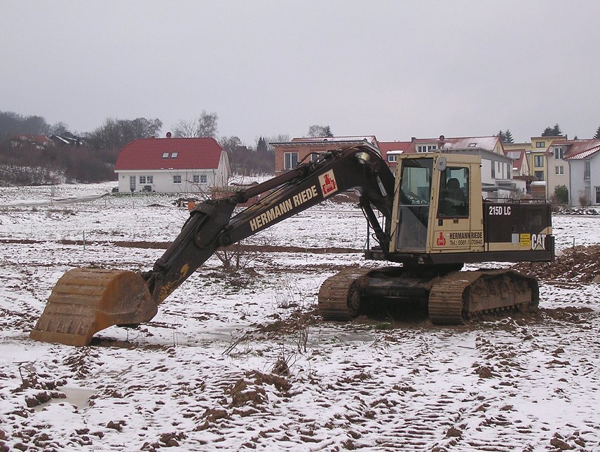 Hermann Riede in Kassel lackiert seine Maschinen in der Regel in Hausfarben dunkelbraun und beige. Macht im Winter einen düsteren Eindruck, so wie bei diesem 215 D LC, der 2004 in einem Neubaugebiet eingesetzt wurde.