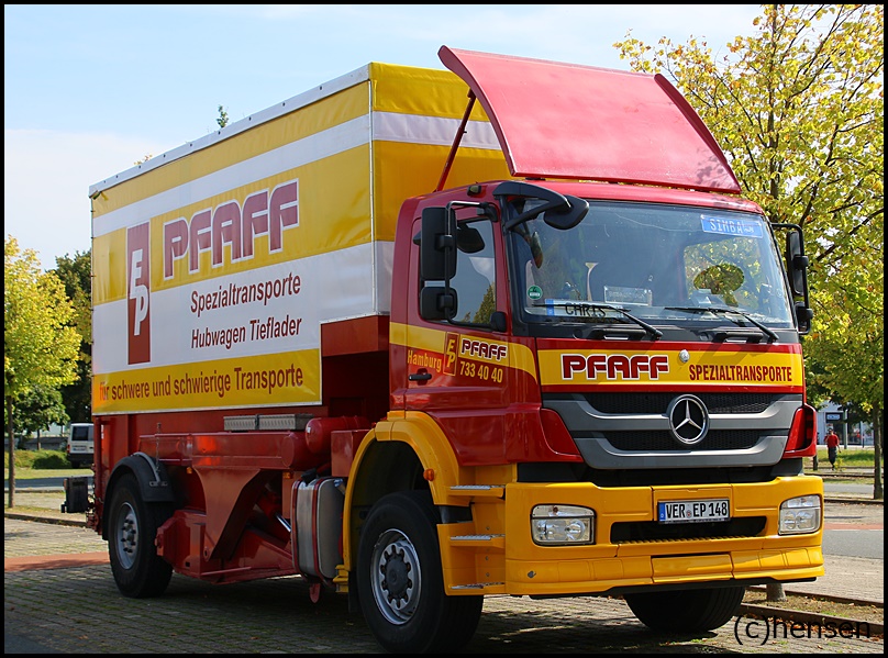 ein traditionsreiches Hamburger Unternehmen, dass es seit 1961 gibt. Angefangen mit einem VW Bulli, beherbergt der Fuhrpark heute über 50 Fahrzeuge. Der ursprüngliche Fuhrpark, bestand bis in die 2000er Jahre aus Mercedes Lkw, die auch heute noch den größten Teil ausmachen, aber auch den ein oder anderen Scania gab/gibt es, wie nachfolgendes Foto zeigt:
