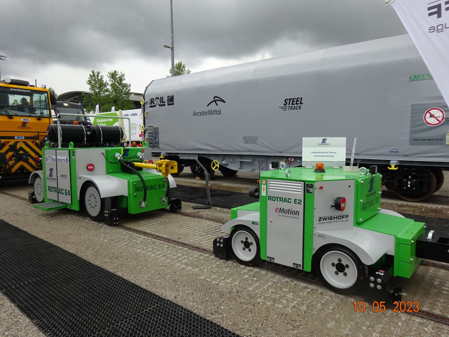 Dazu noch ein Zweiwegefahrzeug von Zwiehoff, und Rotrac-Rangiergeräte derselben Firma.