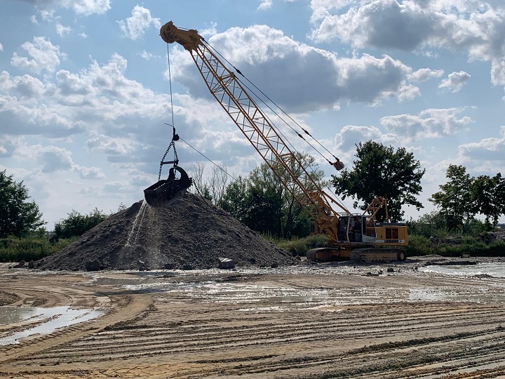 Der 2. Liebherr HS 8100 HD Seilbagger von Seilbagger Gran. Im einsatz bei Kieswinnung.