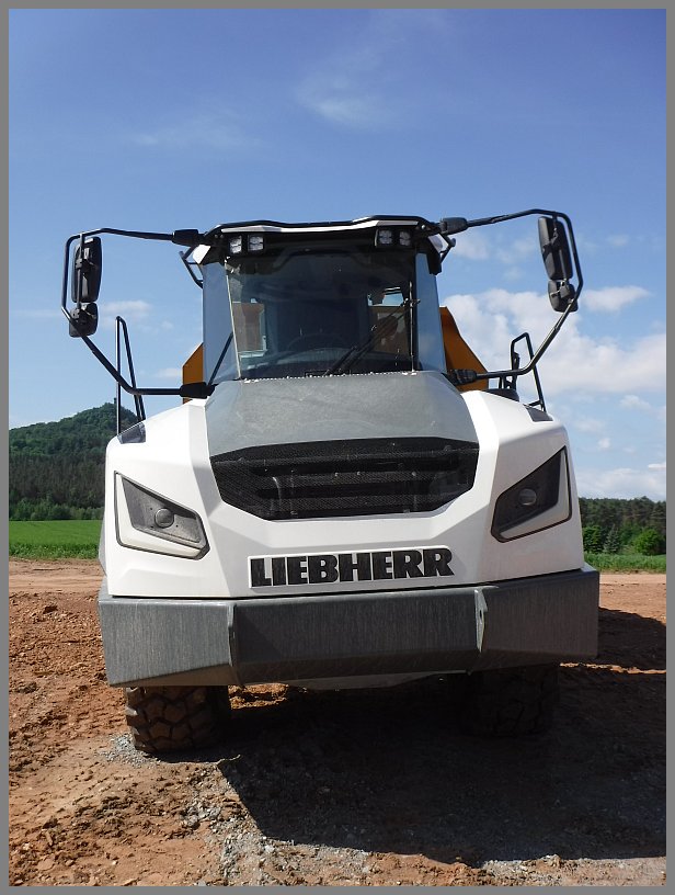 Typische Liebherr Farbsprache. Führerhaus/Kabine weiß, Rest gelb.