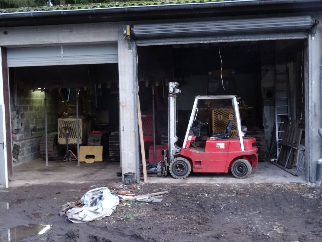 nachdem es mit der BL 200 dieses Jahr nicht weiterging (Gabelstaplerproblem), habe ich mir eine andere "Baustelle" gesucht: die Fortsetzung des Projekts "neue Halle", das ich schon letztes Jahr angefangen habe. Kurz zur Info: die drei Parteien (Brennholz-Firma, Wohnwagen-Werkstatt und ich), die das Gelände in Ottweiler bisher gemietet hatten, haben das Gelände aufgeteilt und jeder hat seinen Teil gekauft. Jetzt habe ich zwei Hallen, aus denen mich niemand mehr vertreiben kann. Eine meiner Hallen war von einer Pleite-gegangenen Brennholz-Firma, und die hatten darin noch eine Trocknungskammer eingebaut. Die nimmt Platz weg und musste raus. Das erste Foto zeigt die Wände und Zwischendecke der Trocknungskammer. Das zweite Foto zeigt die BL 160, die den Abriss gemacht hat. Leider habe ich davon keinen Film, war auber auch eher unspektakulär. Einmal kurz mit der Schaufel die Wand gerammt und schon lag alles in Schutt und Asche. Das zeigt das dritte Foto. Dann kamen tagelange Aufräumungsarbeiten, dann musste noch der Hackschnitzelbunker vor der Halle weg, dabei hat mir dann der kleine Kramer geholfen.