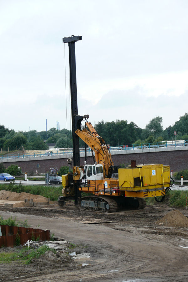 Möbius setzt momentan einen R 984 C HD als Geräteträger für eine Rammeinrichtung beim Autobahnbau in Hamburg ein.
