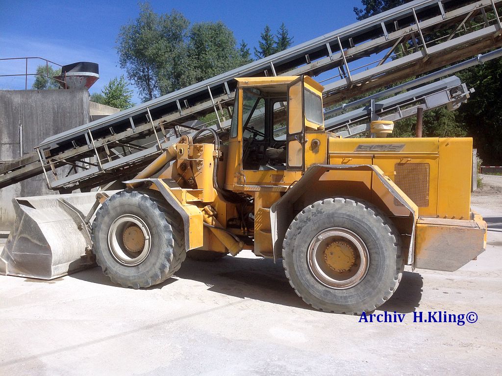 bei dem Radlader handelt es sich vermutlich um ein ehemaliges Gerät der Rheinbraun Tagebaubetriebe. Vieles der Sonderausstattung - schwere Anhängerkupplung, Anhängerbremsanlage, Nummernschildträger, Beleuchtung für Straßenzulassung, große Zusatzscheinwerfer, Feuerlöscher Halterung, Warnmarkierung des Ballastgewichtes usw. weisen auf diesen Betreiber hin. Rheinbraun war über viele Jahre treuer Kunde bei Kaelble. Seitenbaumraupen, Planierraupen und Radlader wurden entsprechend der Wünsche von Rheinbraun hin modifiziert und auf deren Bedürfnisse im Tagebaubetrieb zugeschnitten. Viele der Radlader wurden als " Mädchen für alles" mit speziellen Anbauten für die Montage, Reinigung und Wartung der umfangreichen Bandanlagen bestellt. Auch Anhänger wurden häufig durch diese Radlader gezogen. Spezielle Tiefladerzüge mit doppelten Triebköpfen wurden mehrfach an Rheinbraun geliefert. Später dann auch als " Nachbau" von Titan.
