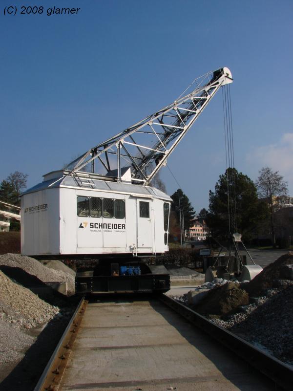 Der Hersteller dieses Schienenkrans war, soweit ich weiss, die Bischof Maschinenfabrik. Die Kibag setzt auch noch einige dieser Krane ein und meine, irgendwo mal eine Herstellerplakette gesehen zu haben.