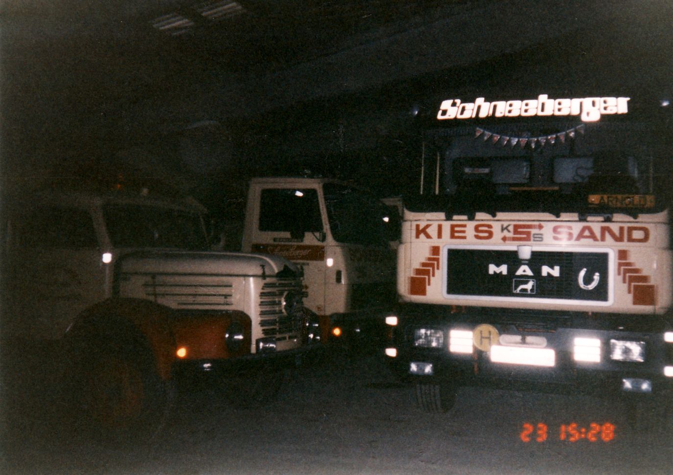 .......hat heute nur noch einen blauen 4 achs TGA Mischwagen mit den er in Linz für die große Betonfirmen als Sub fährt und noch drei alte MAN mit dennen er nicht mehr Arbeitet ( F90, F8 und einen Langschnauzer), die Schottergrube in Asten wurde glaube ich verkauft