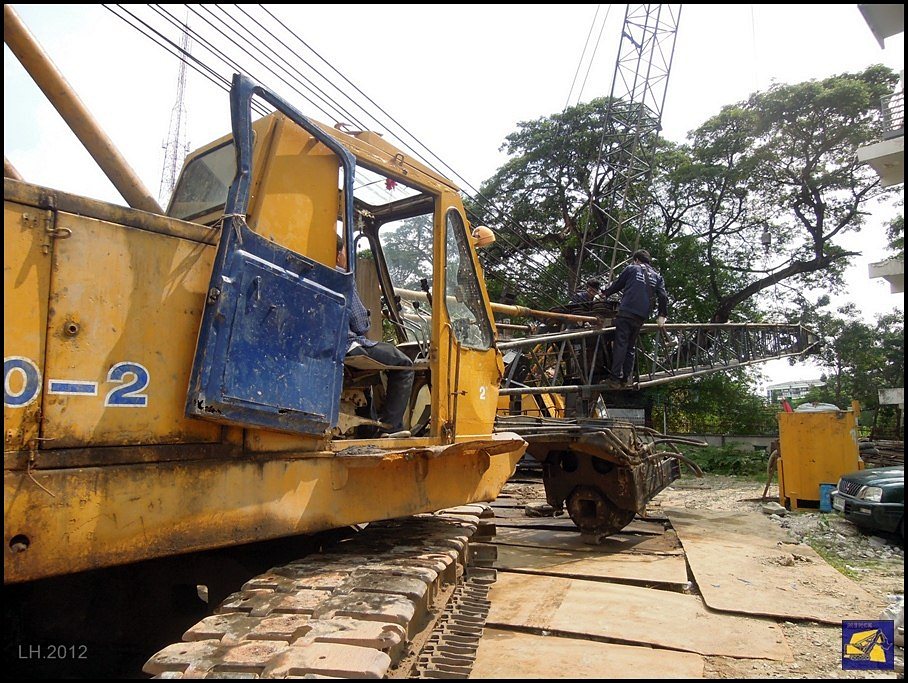 NIPPON-SHARYO Seilbagger Modell DH300-2 in Bangkok beim Aufbau mit einem Bohrgerät unter Zuhilfenahme eines weiteren Seilbaggers;