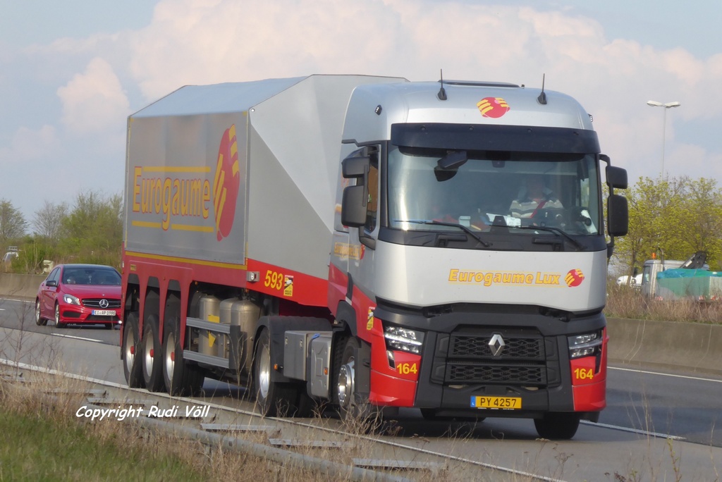 Hier ein Bild von letzten Donnerstag, als mir dieser T460.19T Evo Innenladersattelzug von Eurogaume Lux auf Höhe der Raststätte Aachener Land vor die Linse gerollt ist. Der Fahrer hat sich offenischtlich gefreut, daß ich das Foto machte, er hat mir jedenfalls zugehupt winke