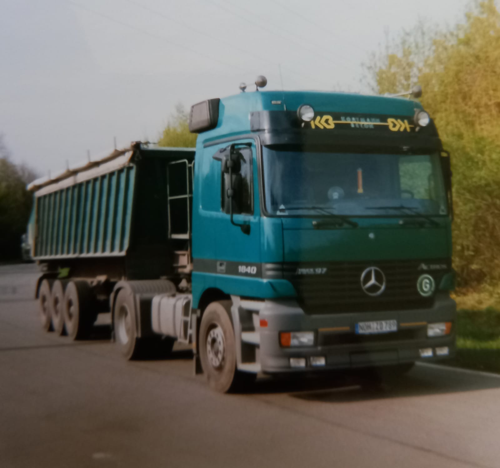 Genug der Worte , hier ein Bild aus vergangenen Tagen , sowie ein relativ aktueller Kipperzug im aktuellen Outfit !! In den frühen 90er Jahren fuhren die Kortmann Lkw noch ohne jegliche Beschriftung über unsere Straßen