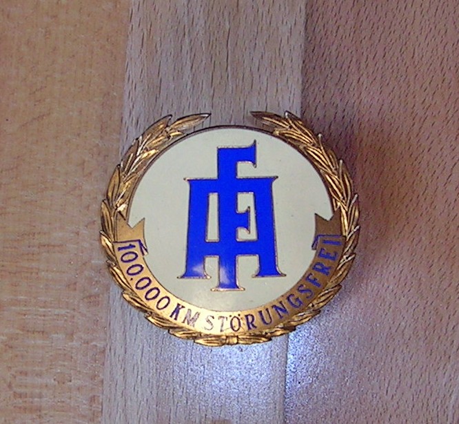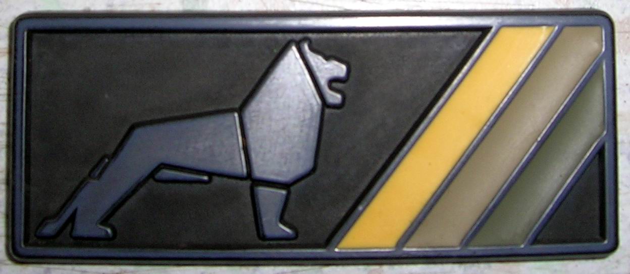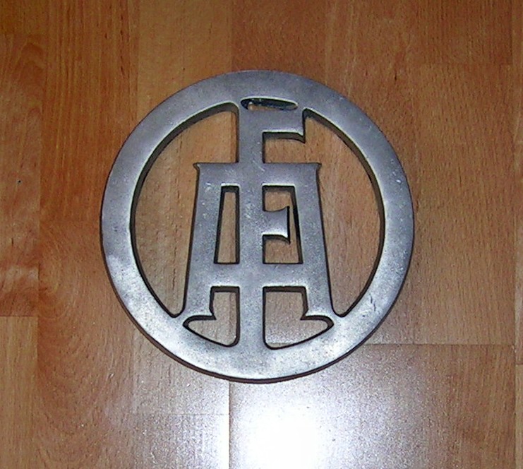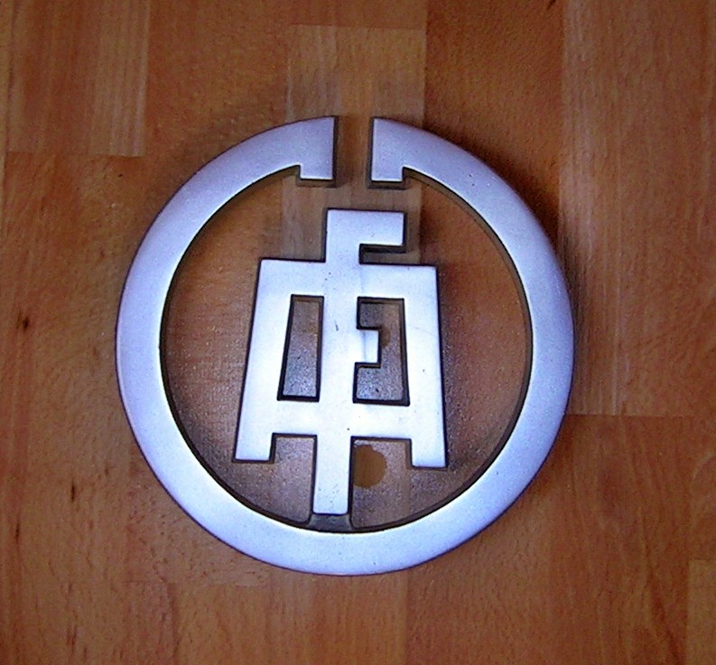 Das ÖAF Emblem aus Holz stammt aus dem ehemaligen ÖAF Werk in Wien-Floridsdorf in der Brünner Straße.