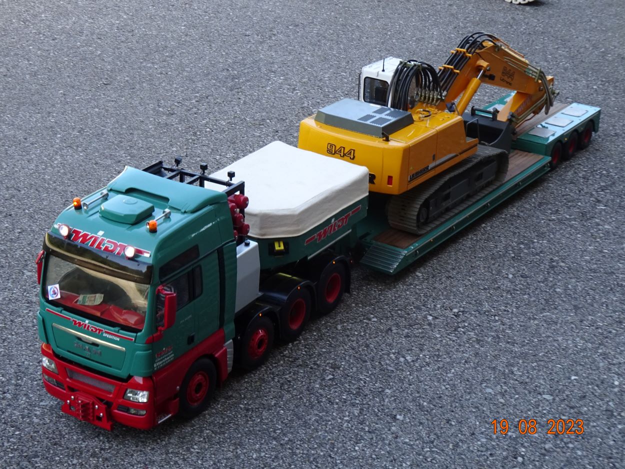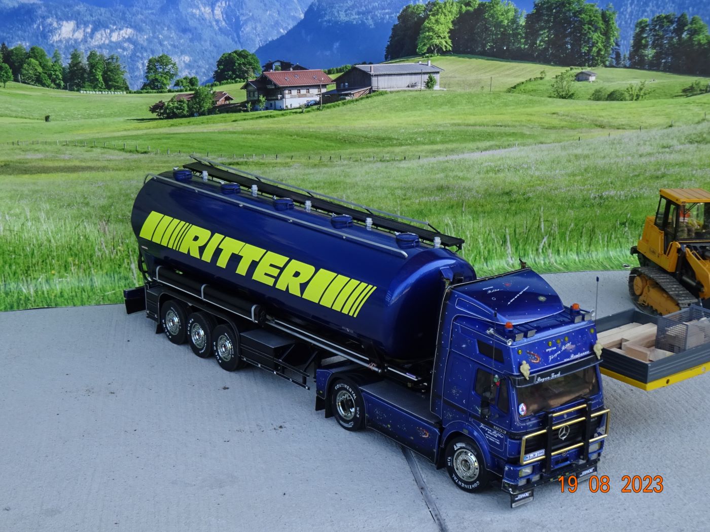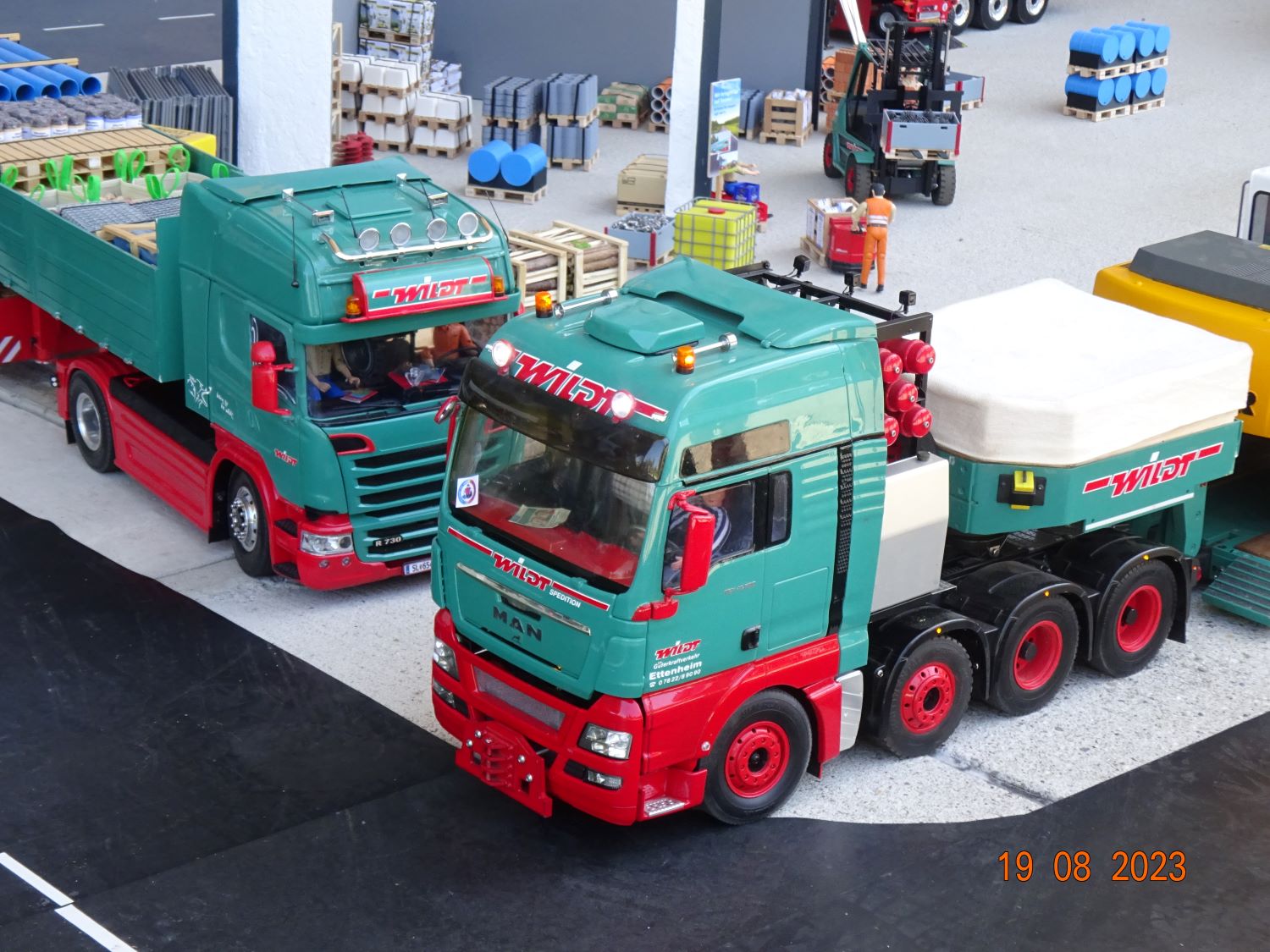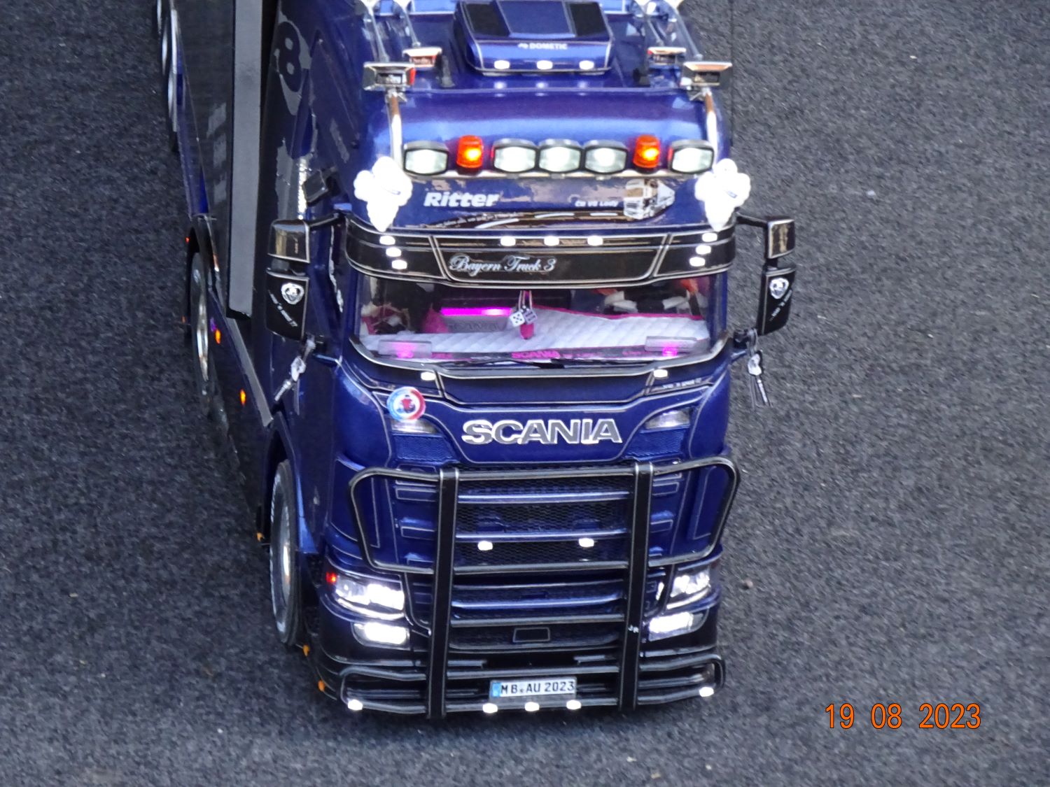 ja, die Modelltrucks waren schon ein Erlebnis. Vor allem die blauen "Ritter"-Trucks. Optisch wunderbar gestaltet, aber auch mit diversen Sonderfunktionen wie z.B. das Öffnen der Schiebeplane, oder das Hochfahren der Luftfederung und das Einklappen der WB-Stützen nach dem Aufbrücken. Oder auch akustisch: der Hund auf dem Beifahrersitz eines der Scanias bewegte sich und bellte!