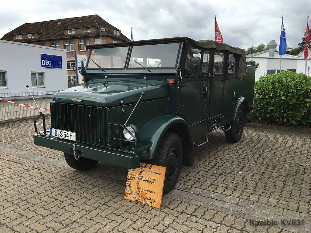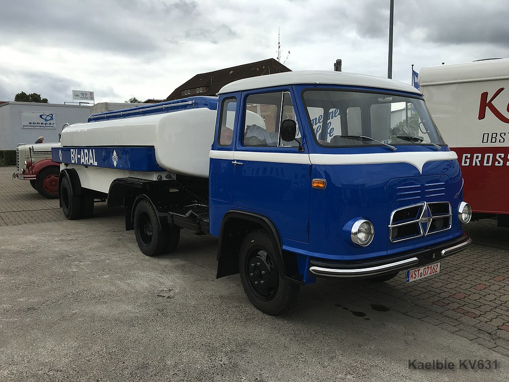 Dere Arallaster ist ein Borgward B 622 mit der Sonderausführung der Doppelkabine. Der wurde für eine Möbelfirma gebaut und lief im ersten Leben mit einem Kofferaufbau. Den gibts nur einmal.