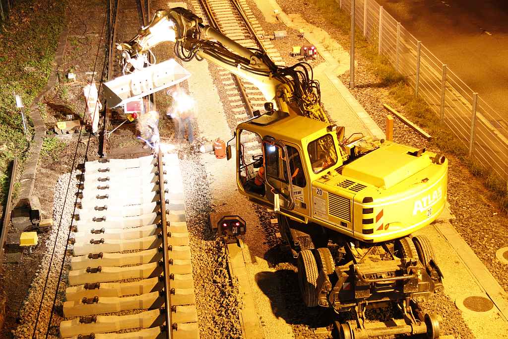 Atlas 1604 ZW beim Nachteinsatz im Gleisbau daumen