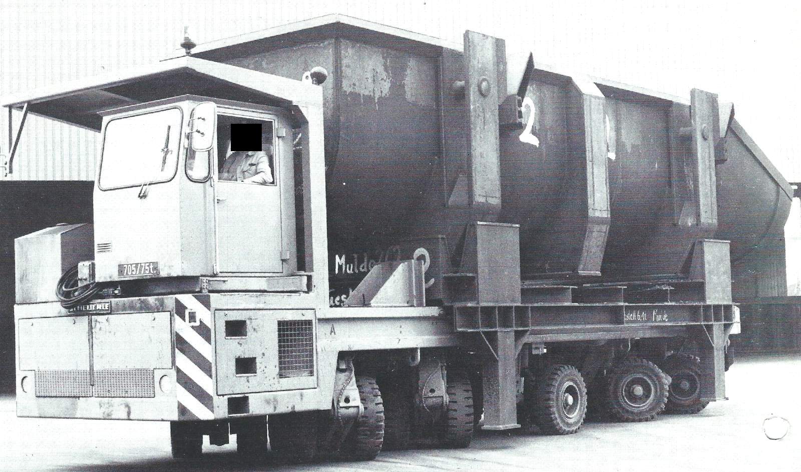 Hier ein Kalmar mit einer 90 Tonnen Walze. Das Fahrzeug läuft bei den Stahlwerken in Bremen.