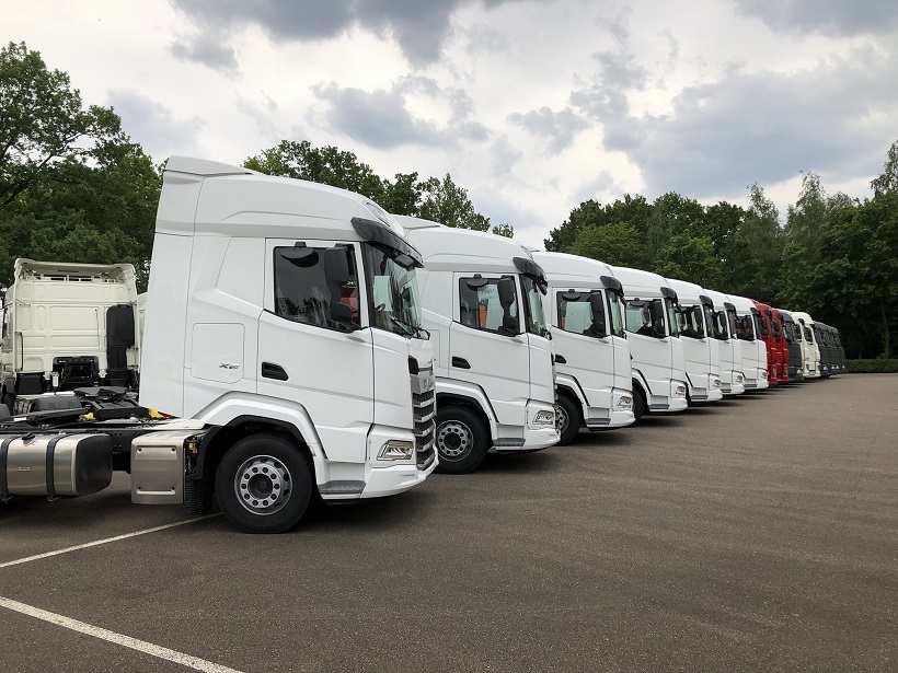 Was die Reihe gelber Zugmaschinen angeht, denkt Ihr alle - glaube ich - zu weit. Es gibt nämlich in den Niederlanden eine große Supermarkt-Kette namens Yumbo. Die kaufen immer mal so 40-50 Zugmaschinen auf einen Schlag, um ihren Fuhrpark aufzufrischen. ich meine, vor zwei Wochen in Montfort auf dem Oldtimertreffen hätte das jemand erzählt, bin aber nicht ganz sicher. Da würde es auf jeden Fall gut hinkommen mit der "kleinen" XF-Kabine. Für nationale Supermarkt-Distribution baucht man nun wirklich keinen XG oder XG+