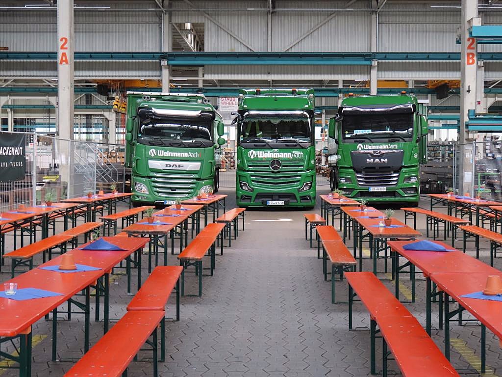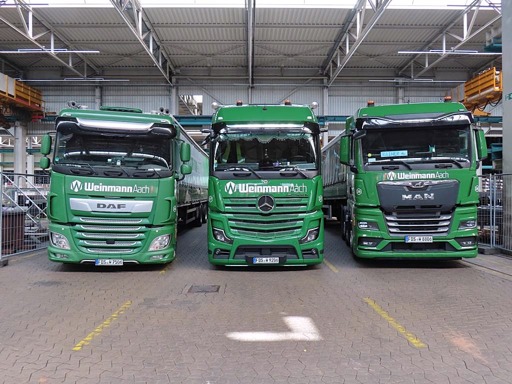 Ich kenne die Firma Weinmann schon von Kind auf... Die Firmenfarbe der LKWs war schon immer grün mit dem weißen Firmenlogo Weinmann Aach! In den 70iger Jahren waren es hauptsächlich Hanomag Henschel und Fiat LKWs die die Ware zu den Kunden auslieferten. Leider habe ich keine Bilder auf Papier von damals.... und nur im Kopf wall Der Fuhrpark bestand damals aus ca. 7 bis 8 LKWs... Kein Vergleich mehr zu heute! daumen
