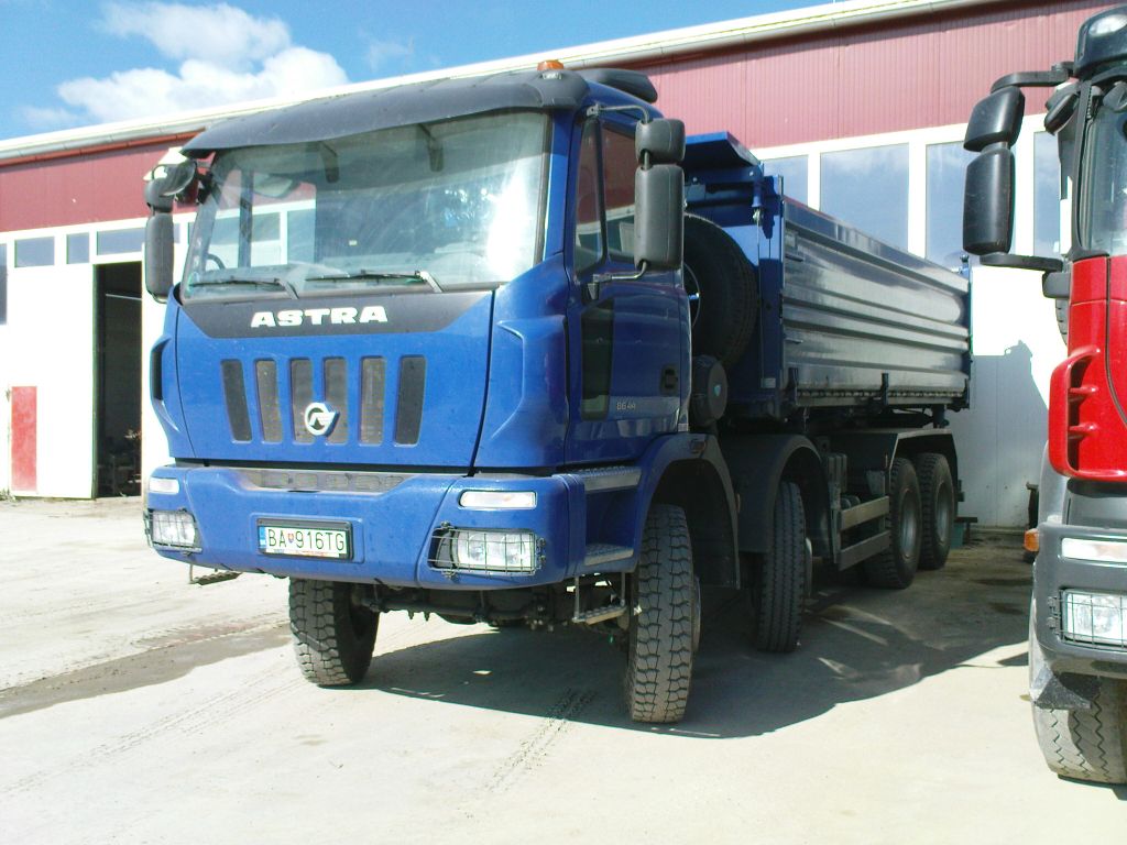 Astra truck are built in Italy in Caorsana. Originally the factory was based in Sardegna (Anonima Sarda TRAsporti) and was founded to restore and repair ex-army trucks that were used a lot in after-war Italy. In '50 and '60 the production grew up and Astra trucks were mainly used as beton mixers. During the years Iveco's parteciaption in the society grew up, now the engines are Iveco but with different powers and also the structure of the cab and other things come from Iveco. Astra also made rigid and articulated dumpers.