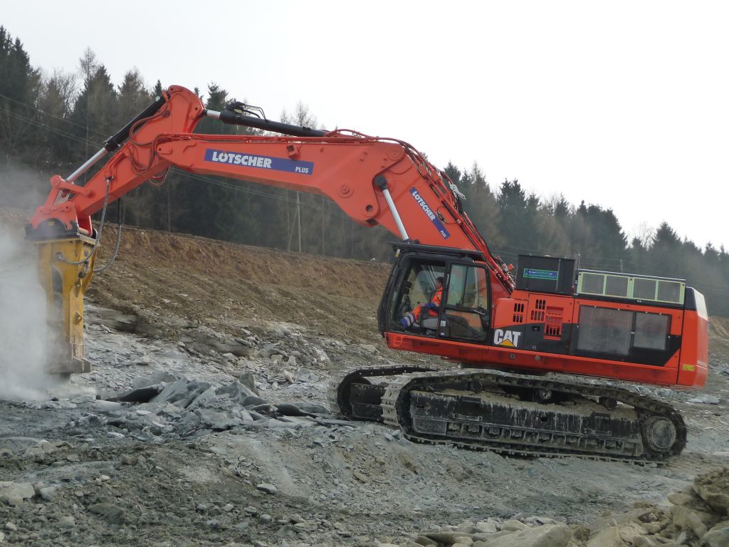 Lötscher's neuer CAT 365C ES UHD im Einsatz mit Atlas Copco HB 10'000!