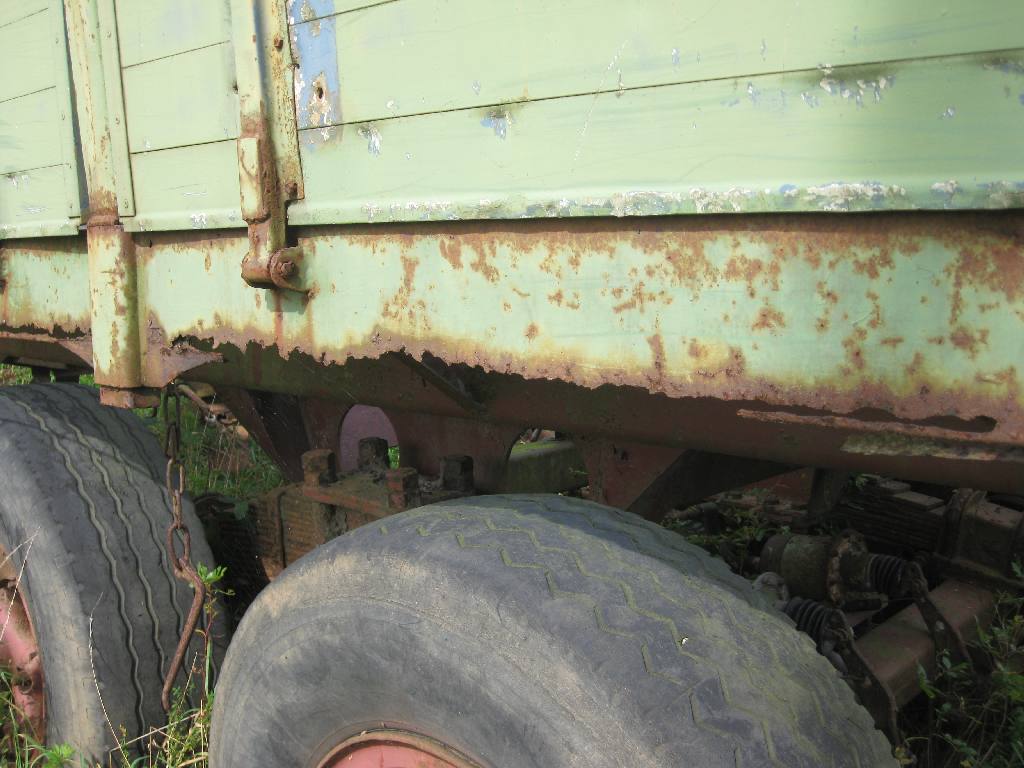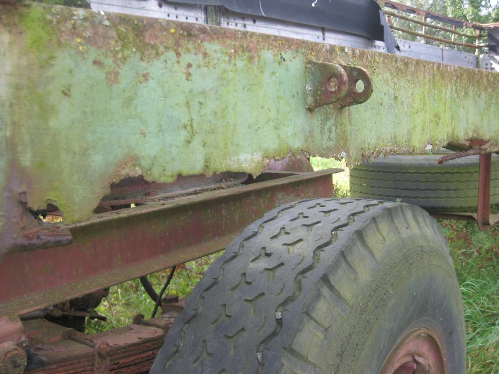 Von der Strassenseiten noch relativ intakt scheinend, sieht es von der straßenabgewandten Seite katastrophal aus. Längstträger durch- und z.T. komplett weggerostet ...